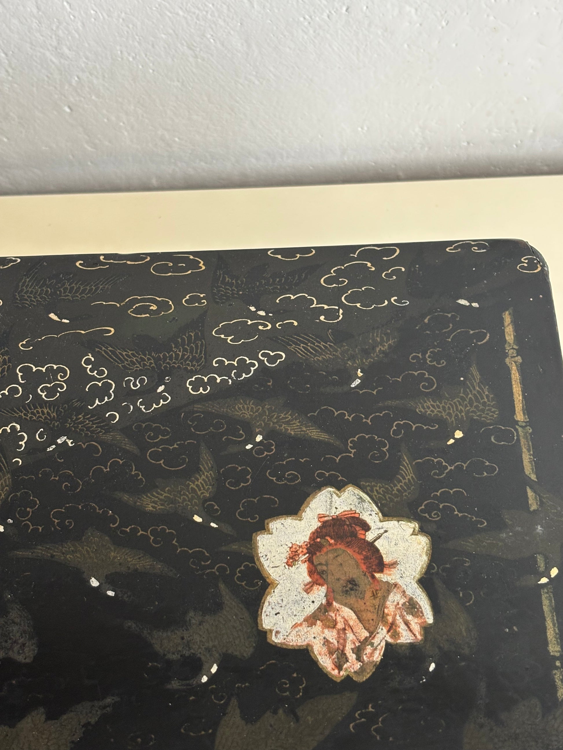Diese japanisch inspirierte Dokumentenbox aus der Napoleon‑III‑Zeit ist ideal für Sammler von Antiquitäten, Orientalika und historischen Schreibtischaccessoires und eignet sich perfekt für elegante Räume und klassisch eingerichtete Arbeitszimmer.
