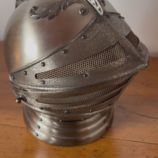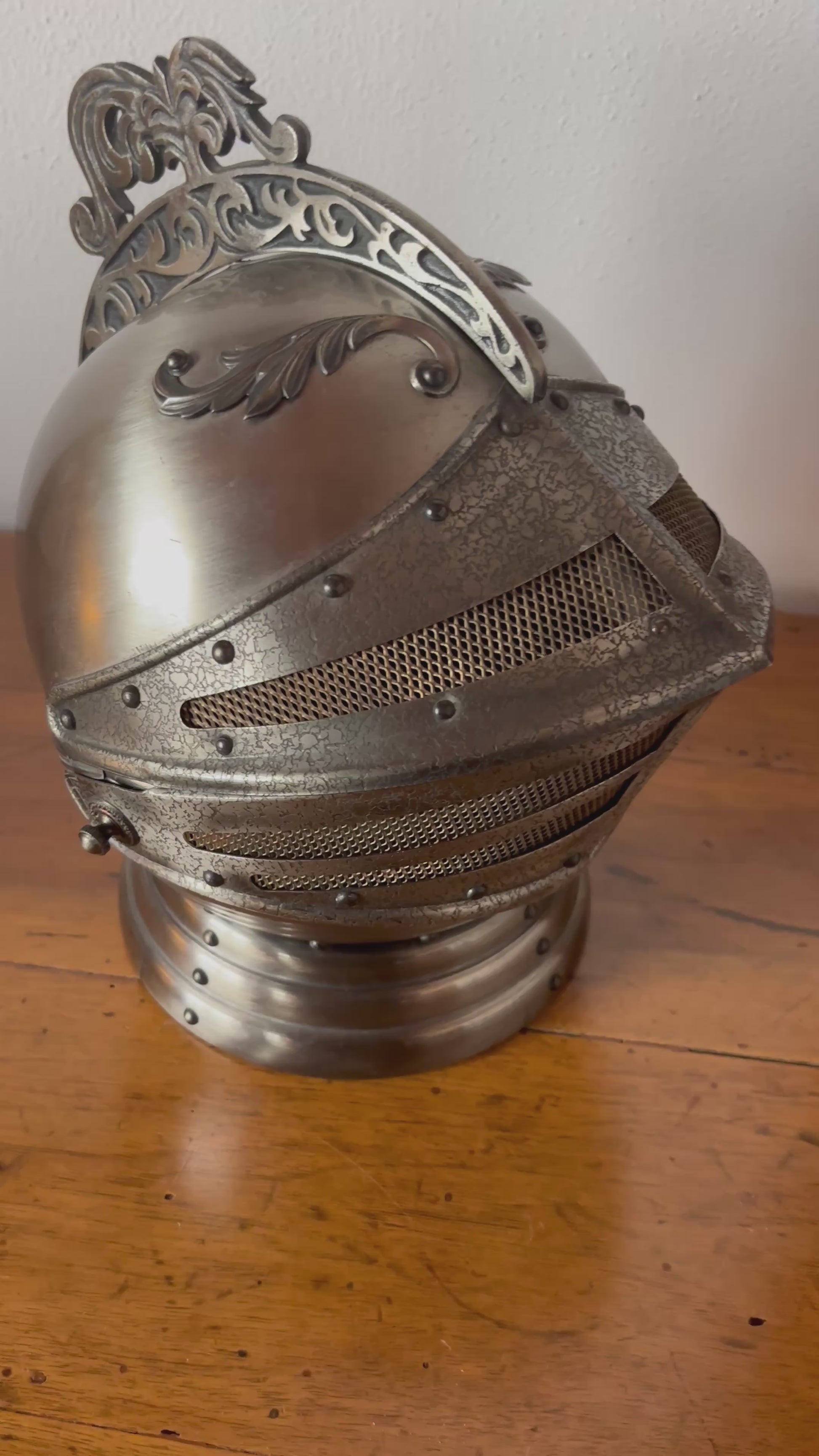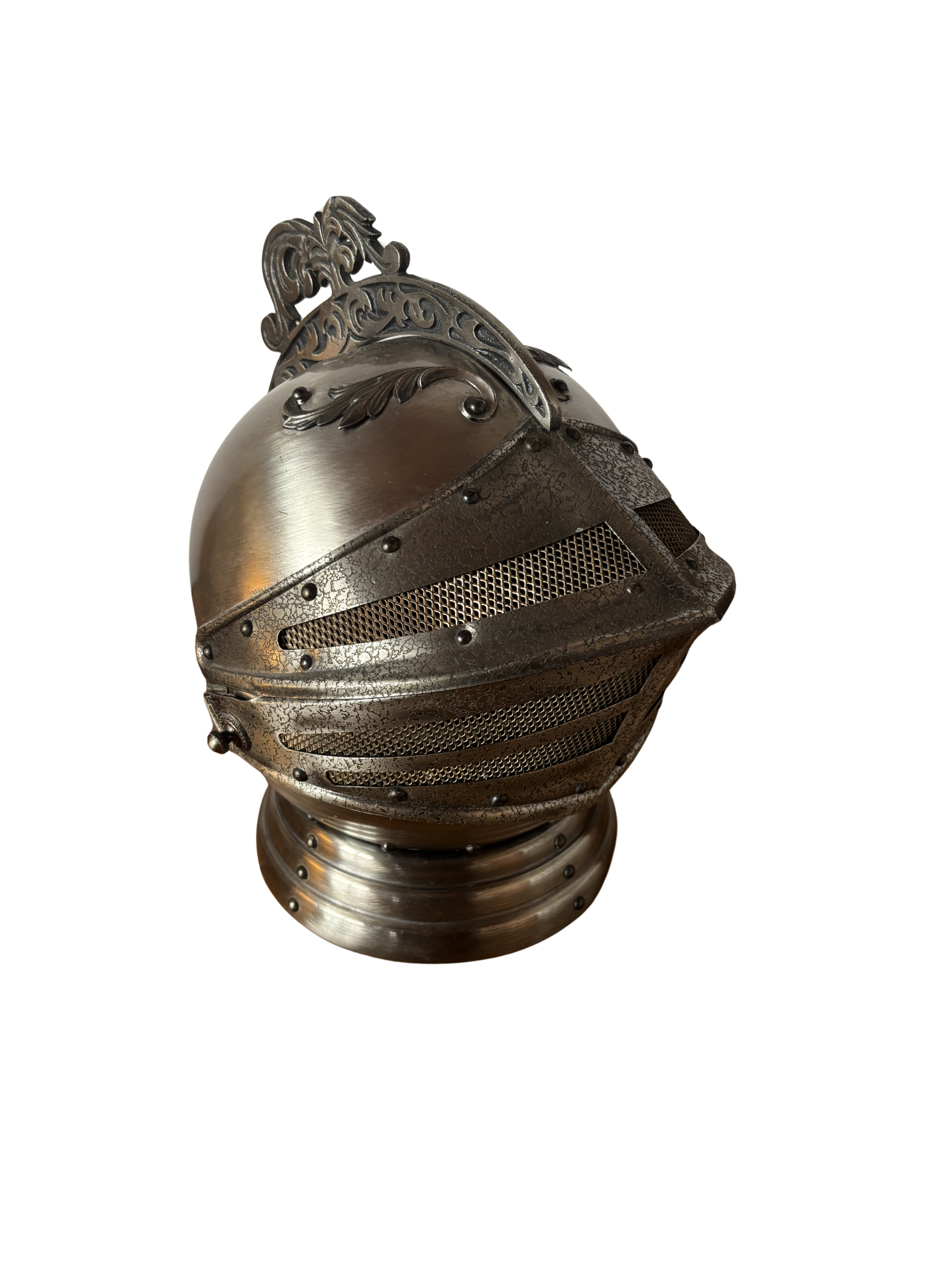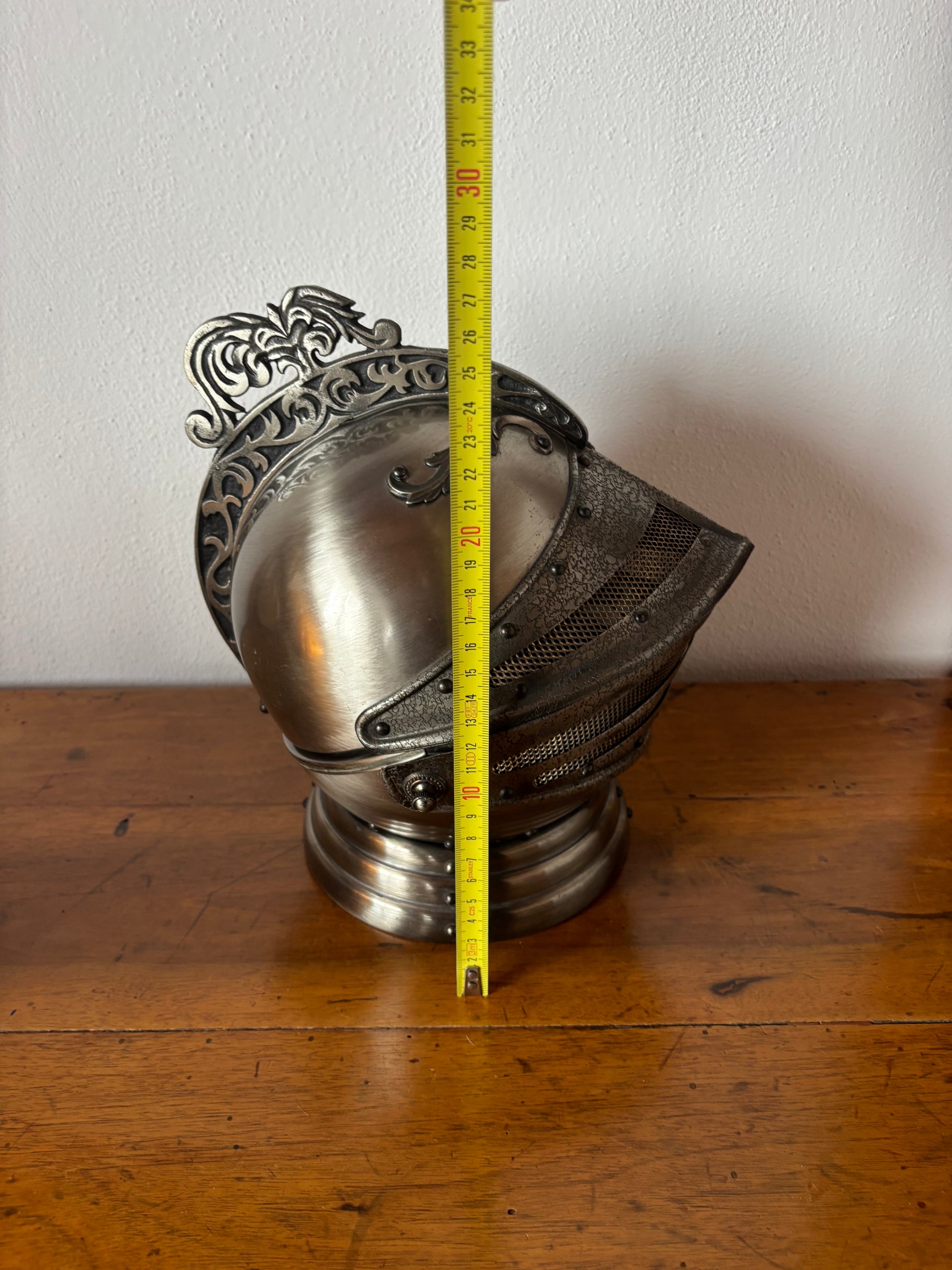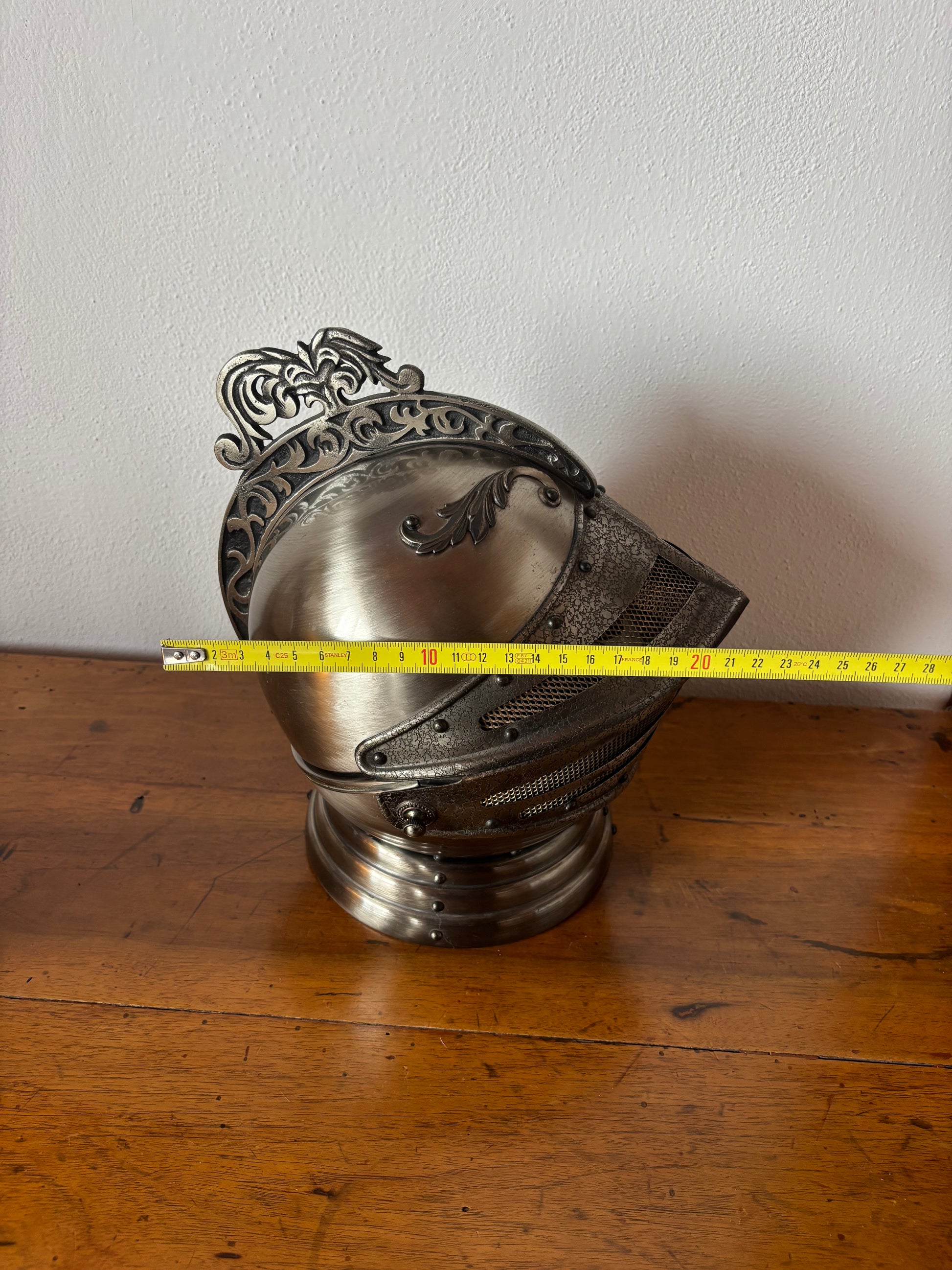 This charming vintage bar helmet is a striking and collectible piece, perfect for enthusiasts of medieval‑themed décor, vintage barware, and unique display items. Crafted with a solid and finely decorated structure, it blends historical aesthetics with functional design, becoming a highly decorative element for any interior.