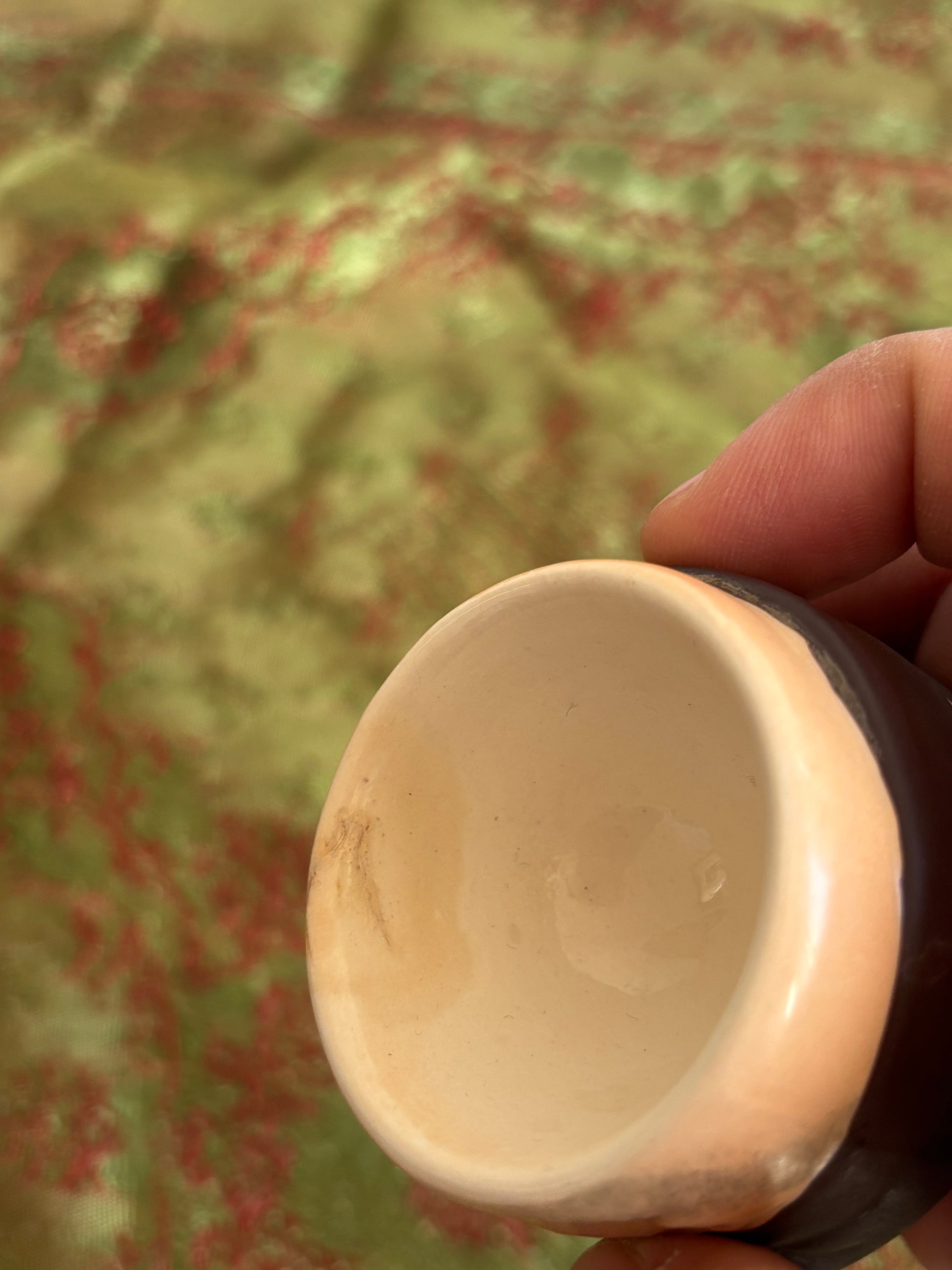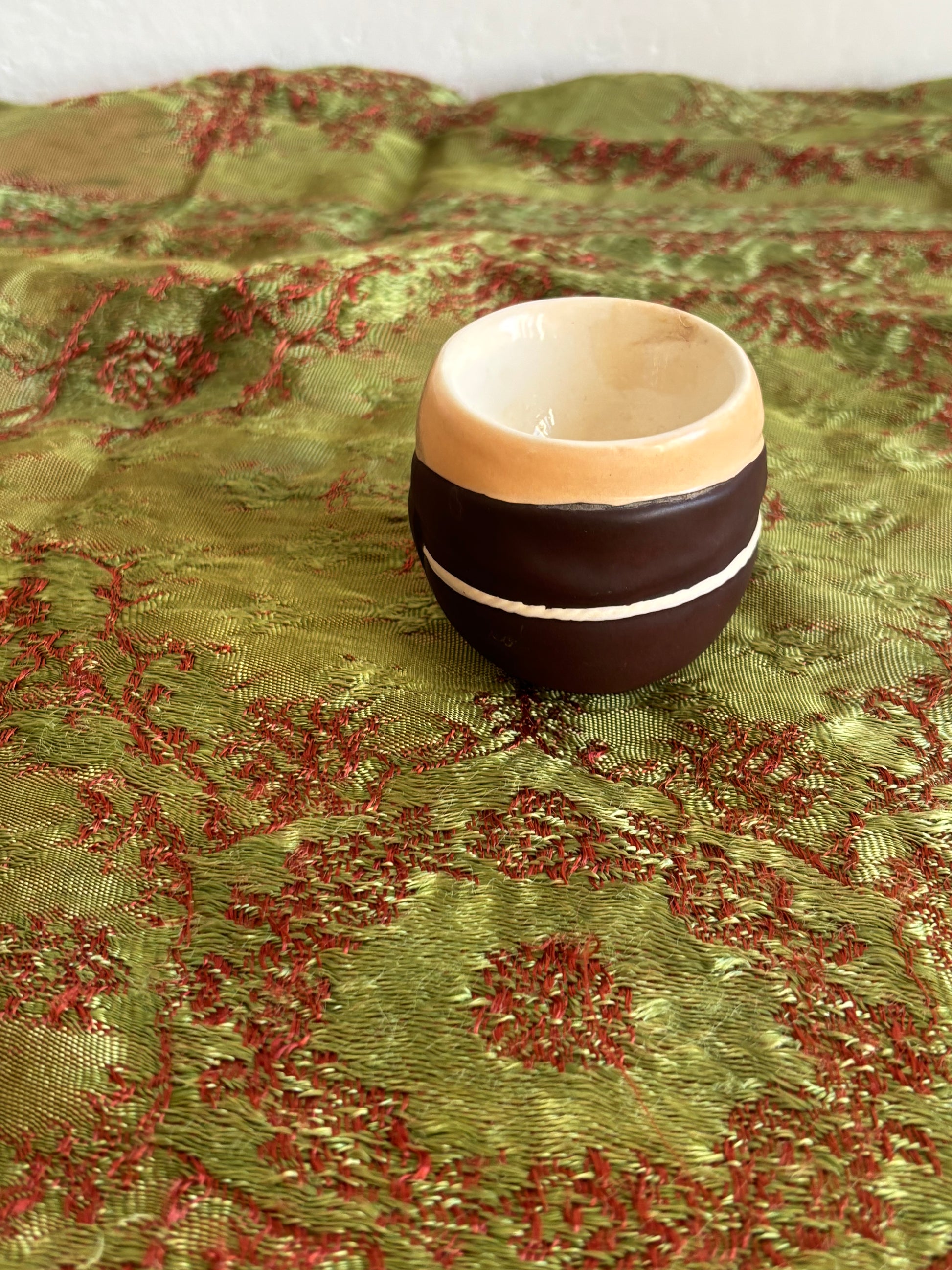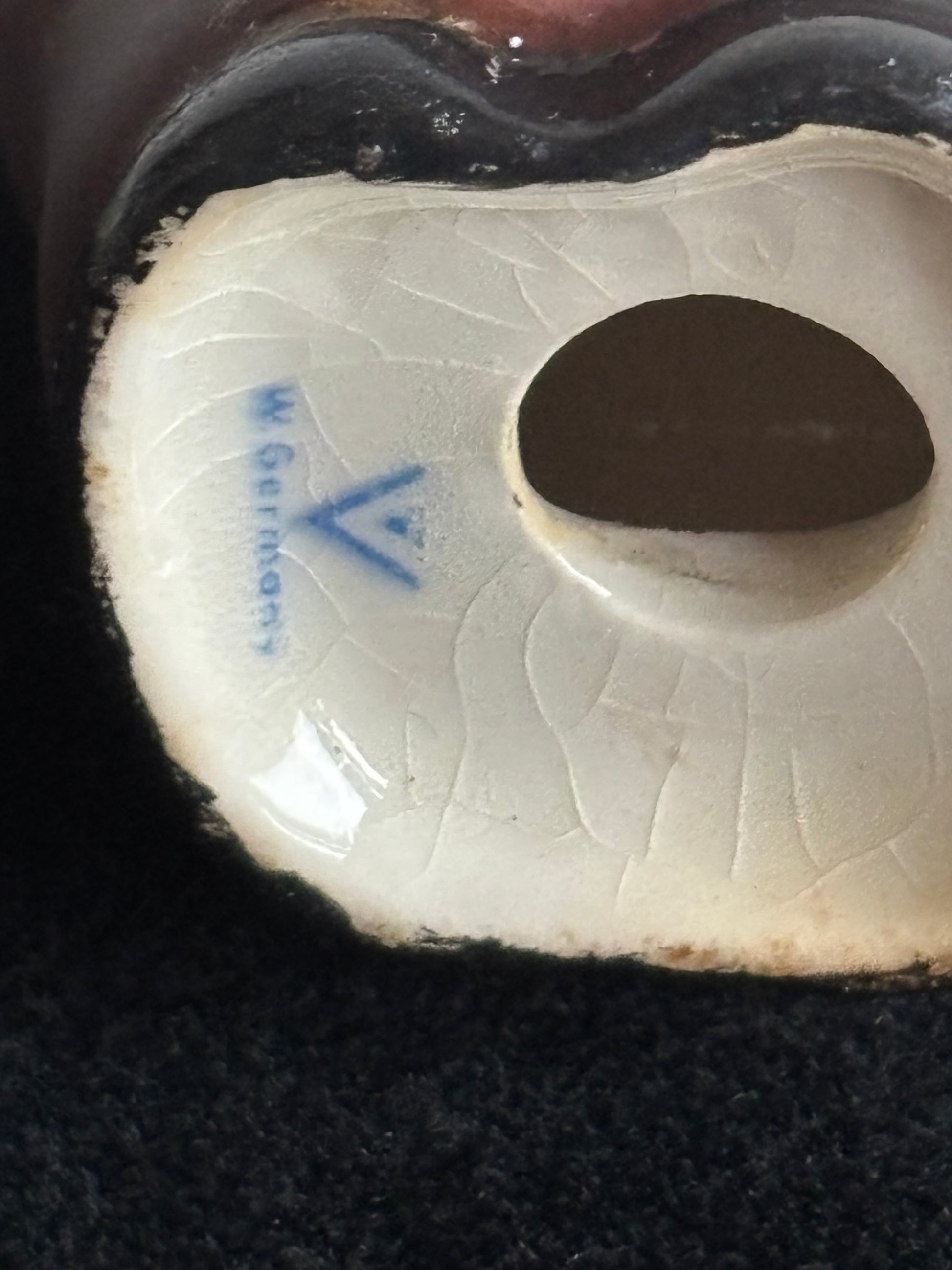 Charming vintage condiment set produced by West Goebel, the renowned West German manufacturer celebrated for its figurative ceramics. The set consists of three containers shaped as smiling friars, crafted in ceramic with brown robes, accompanied by a small tray that completes the composition. It includes a salt shaker, a pepper shaker, and an egg holder, each with lively expressions and carefully executed details that reflect the playful style typical of Goebel’s 1950s creations.