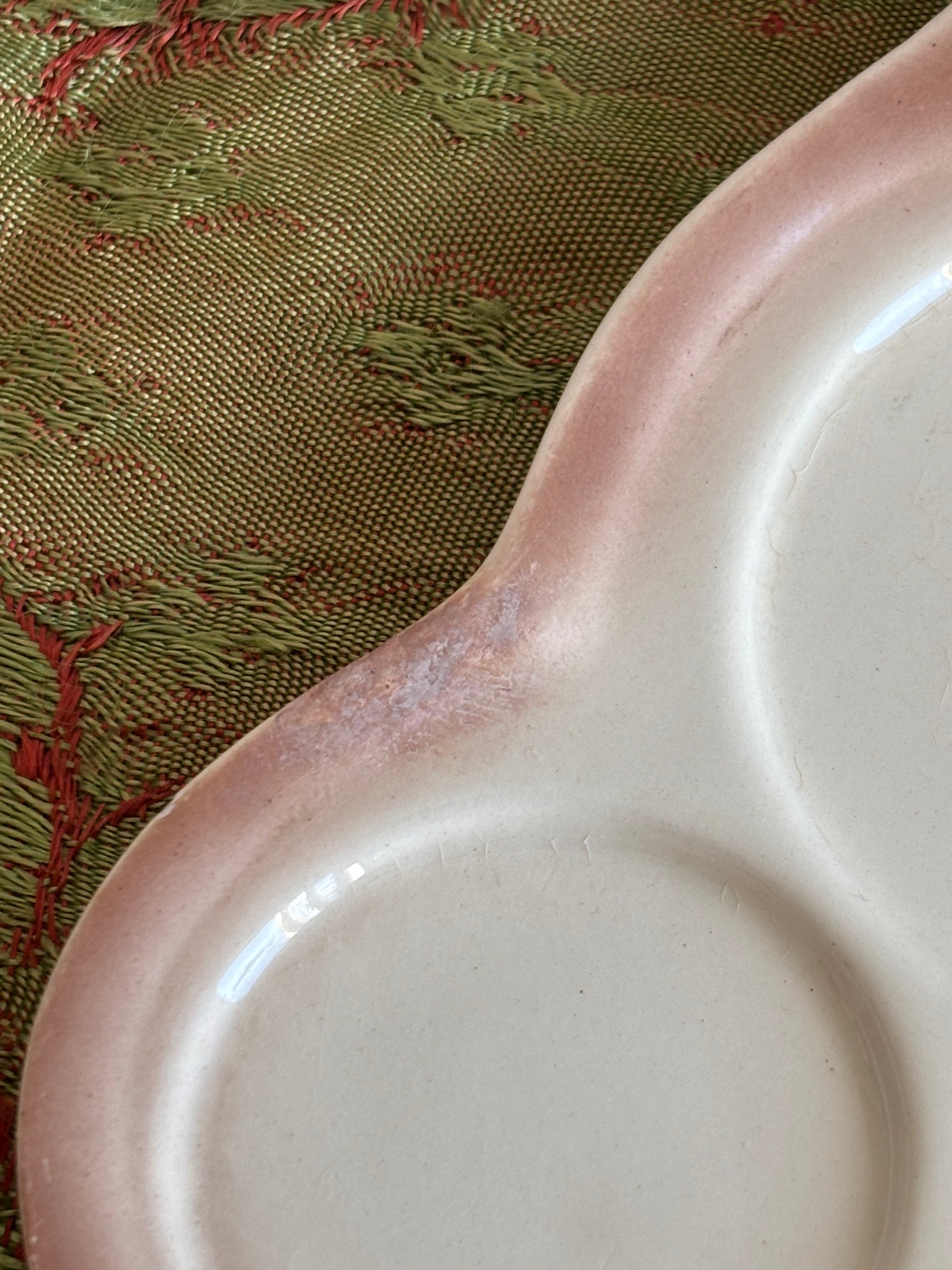There are some chips that have been carefully restored on the salt shaker, pepper shaker, egg holder, and the ceramic tray, as visible in the photographs. The restoration work was carried out with care to preserve the visual harmony and decorative value of the ensemble, while keeping the original character of the set intact.