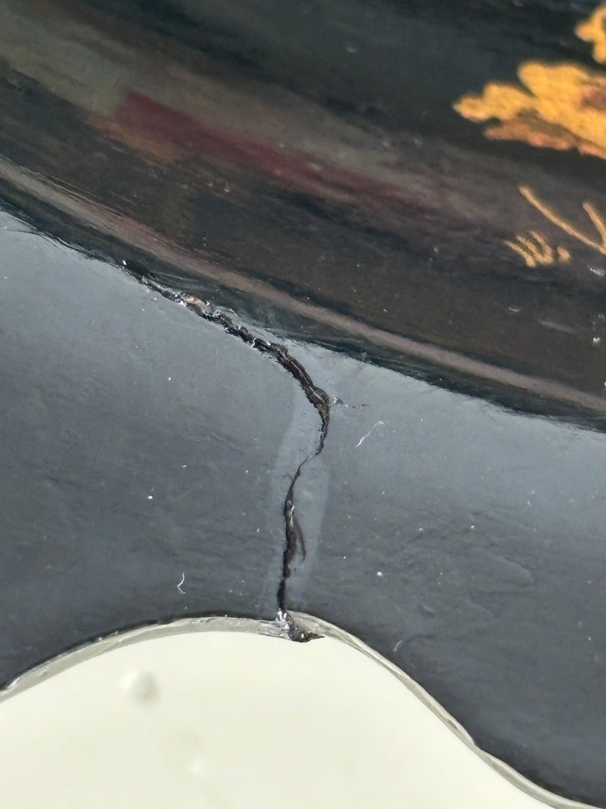 The tray is in good overall condition, with normal signs of wear consistent with age. A crack is present on one of the edges, visible in the photographs, but it does not compromise the stability of the piece. Overall, it is a highly decorative example, representative of nineteenth‑century Orientalist production and particularly suitable for collectors of lacquerware, Napoléon III antiques, and Japanese‑inspired decorative arts.