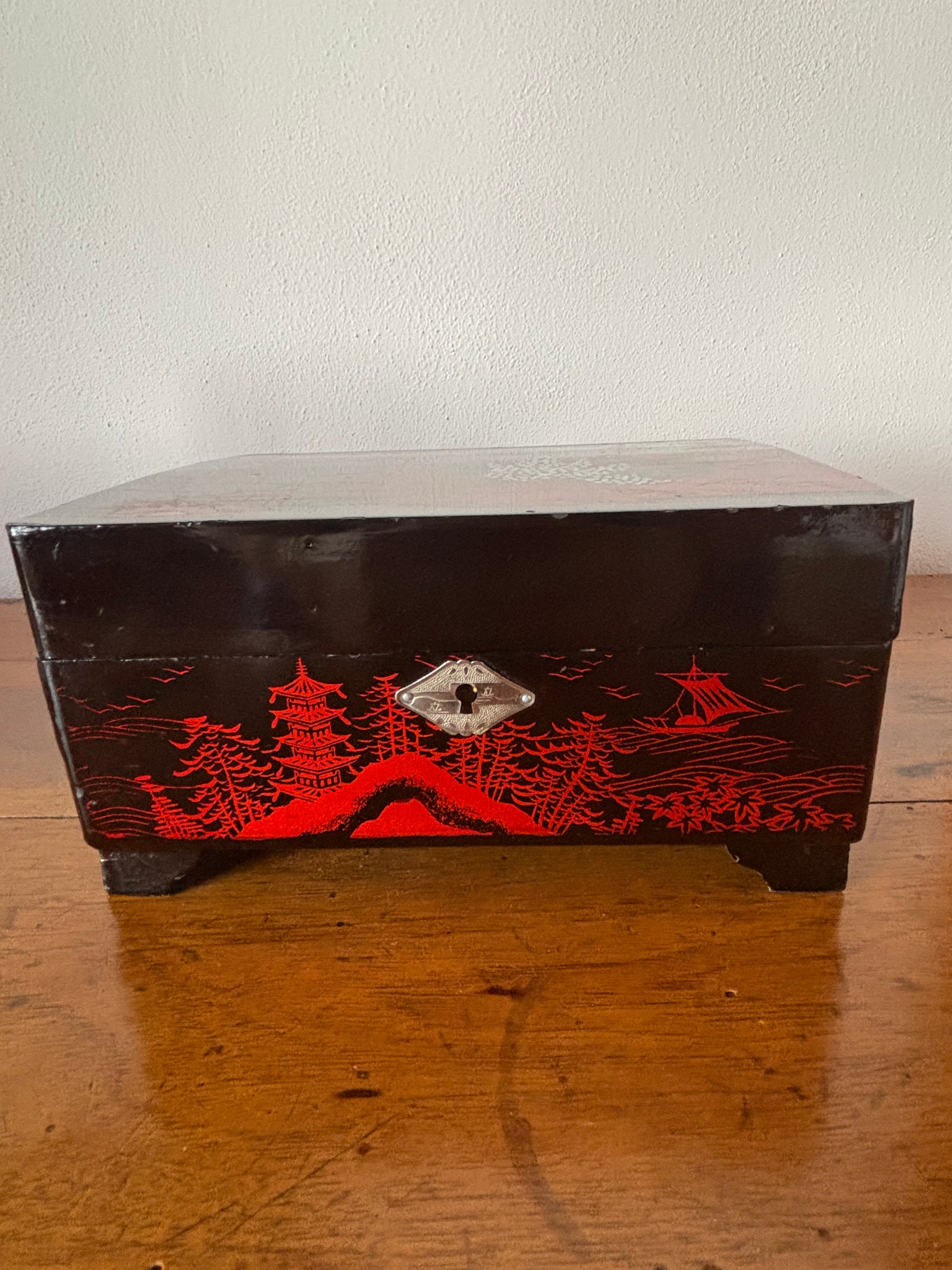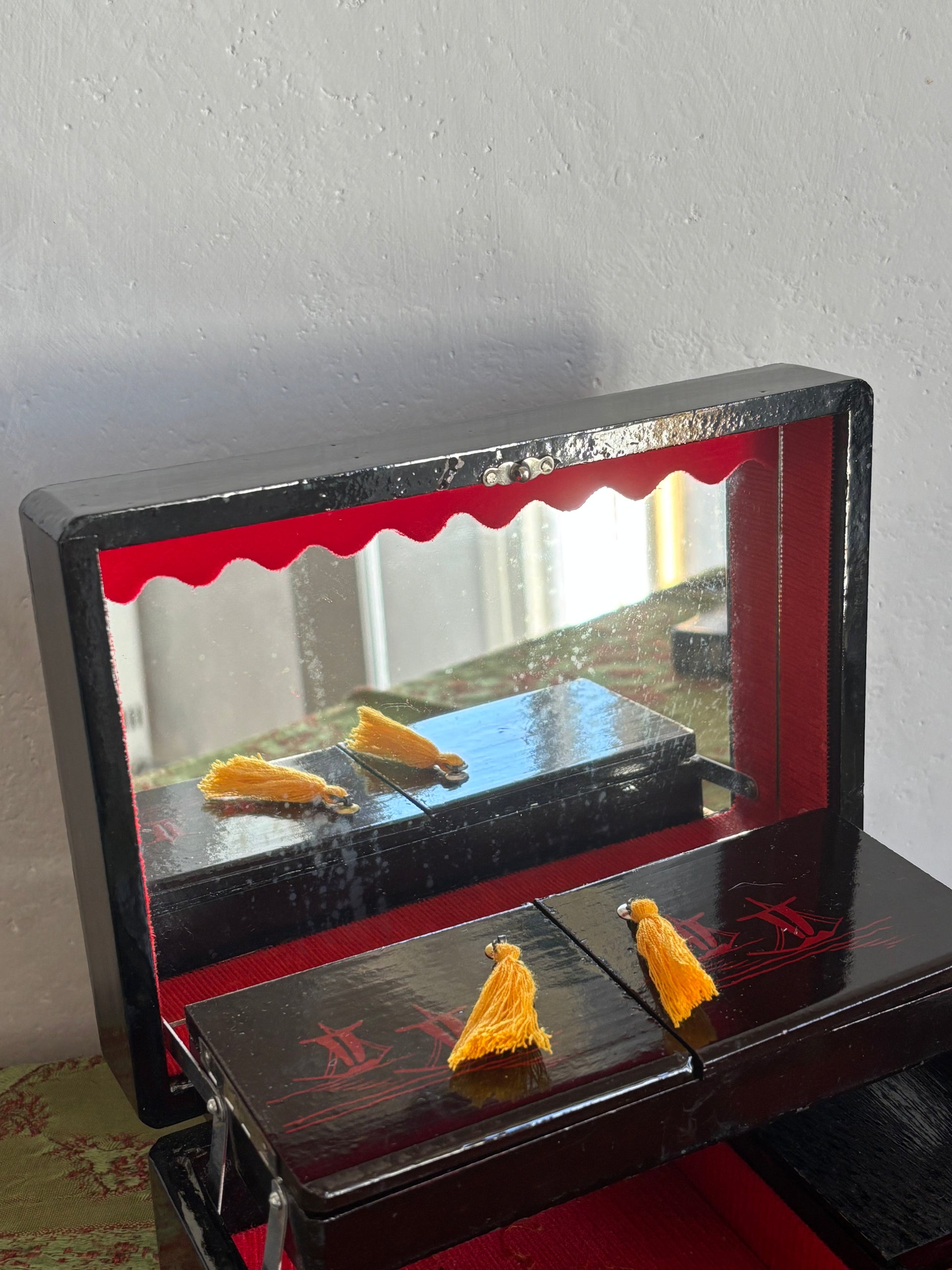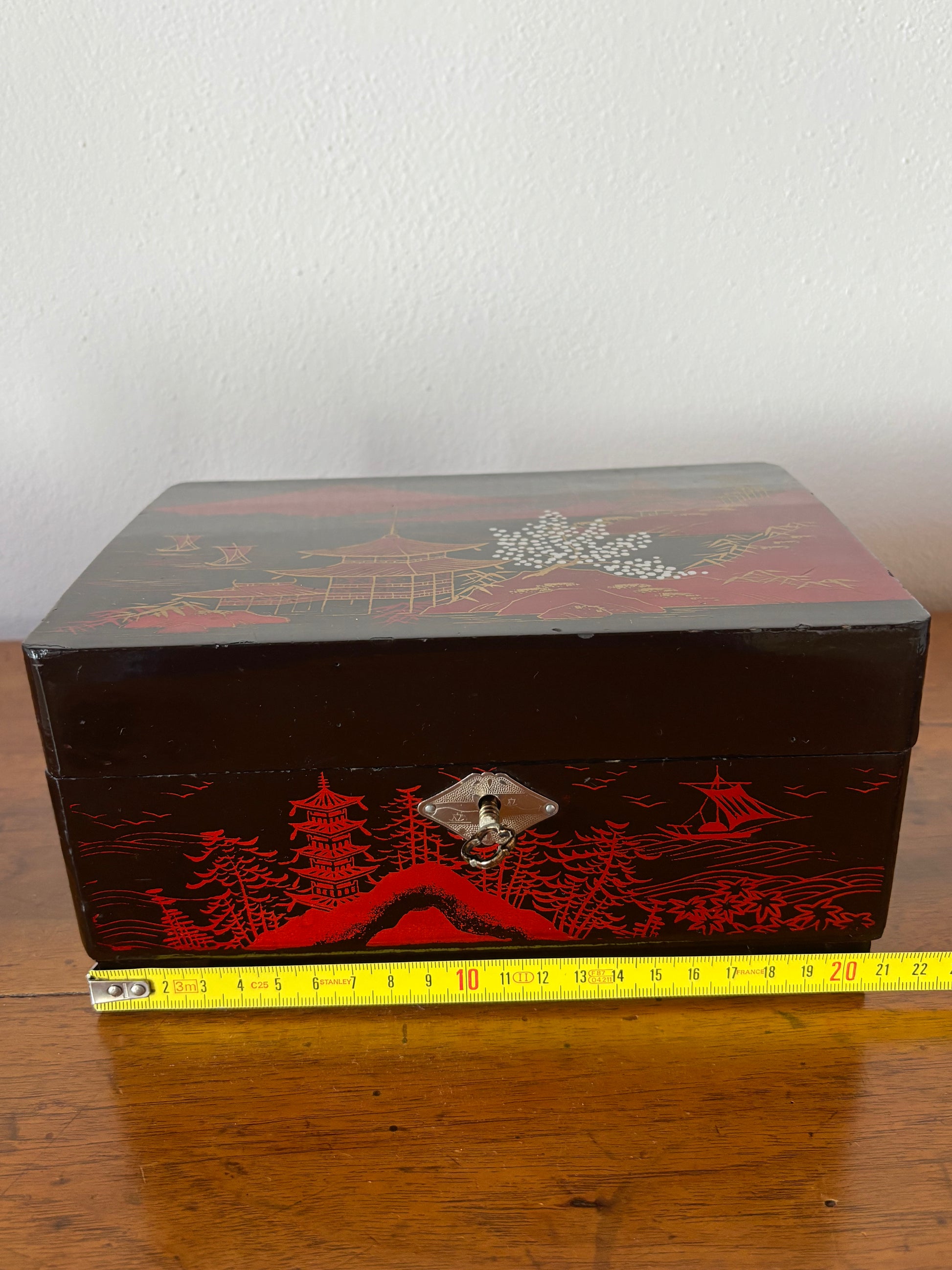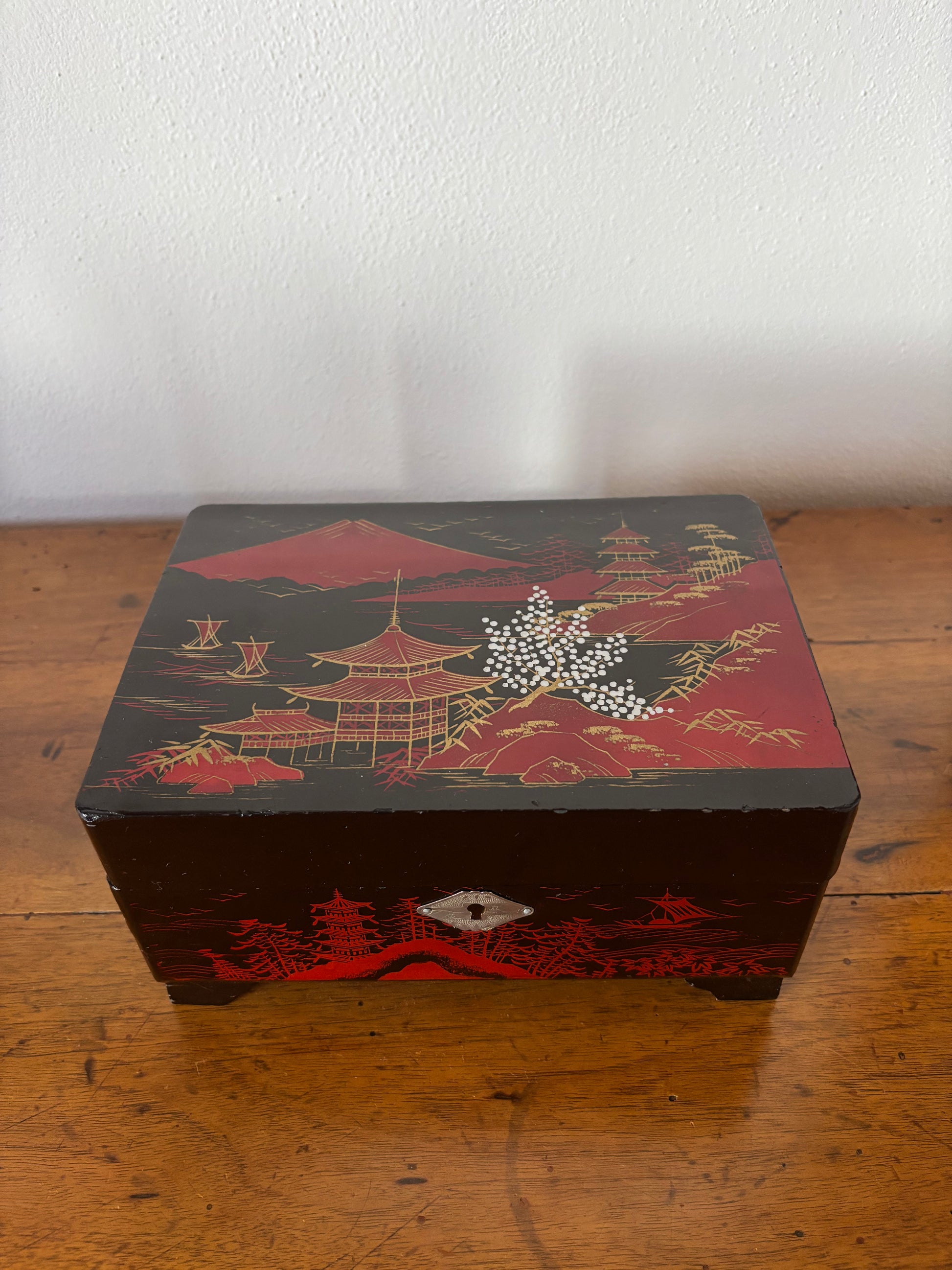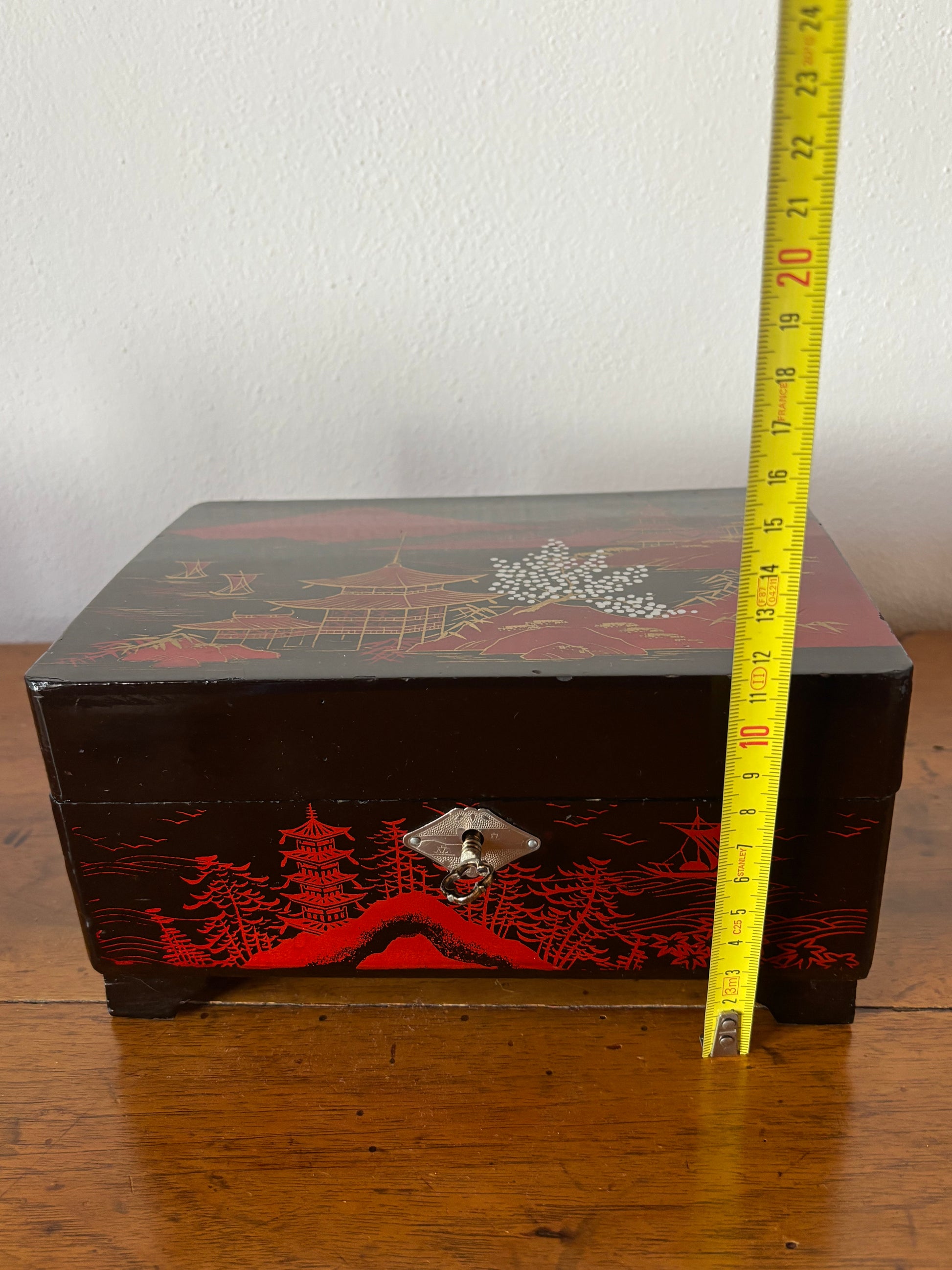 Questo carillon è un pezzo unico, perfetto per collezionisti, amanti dell’estetica orientale o come elemento decorativo capace di aggiungere un tocco di poesia e nostalgia a qualsiasi ambiente.