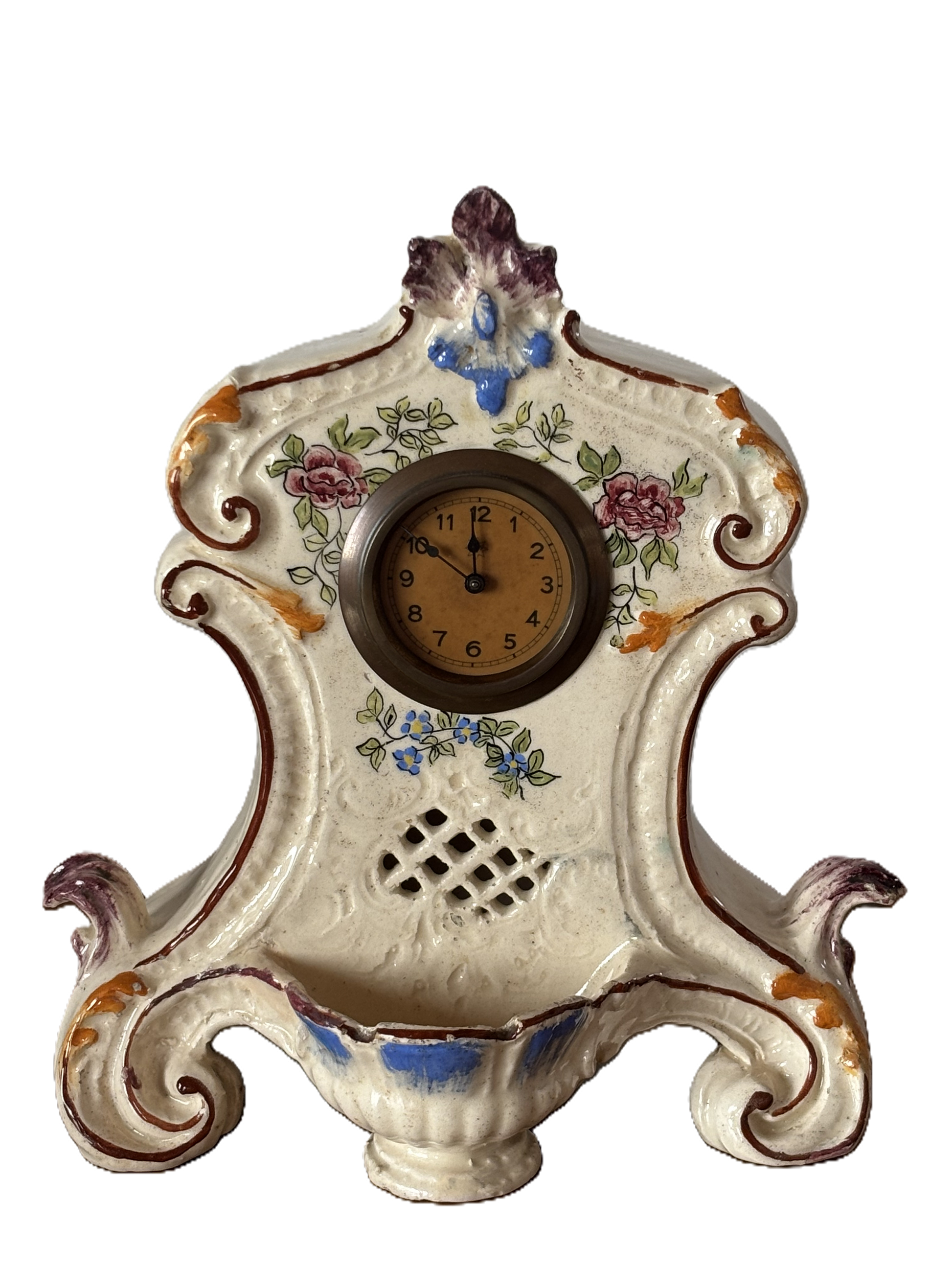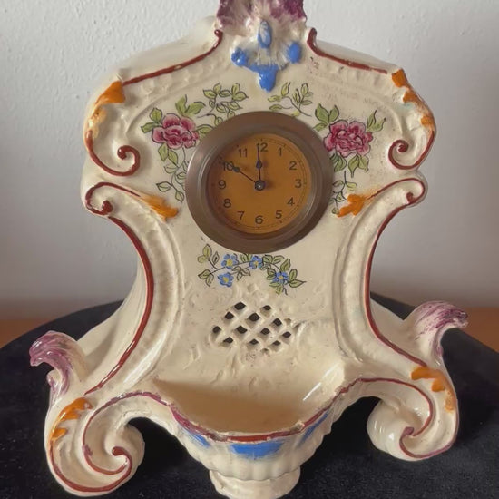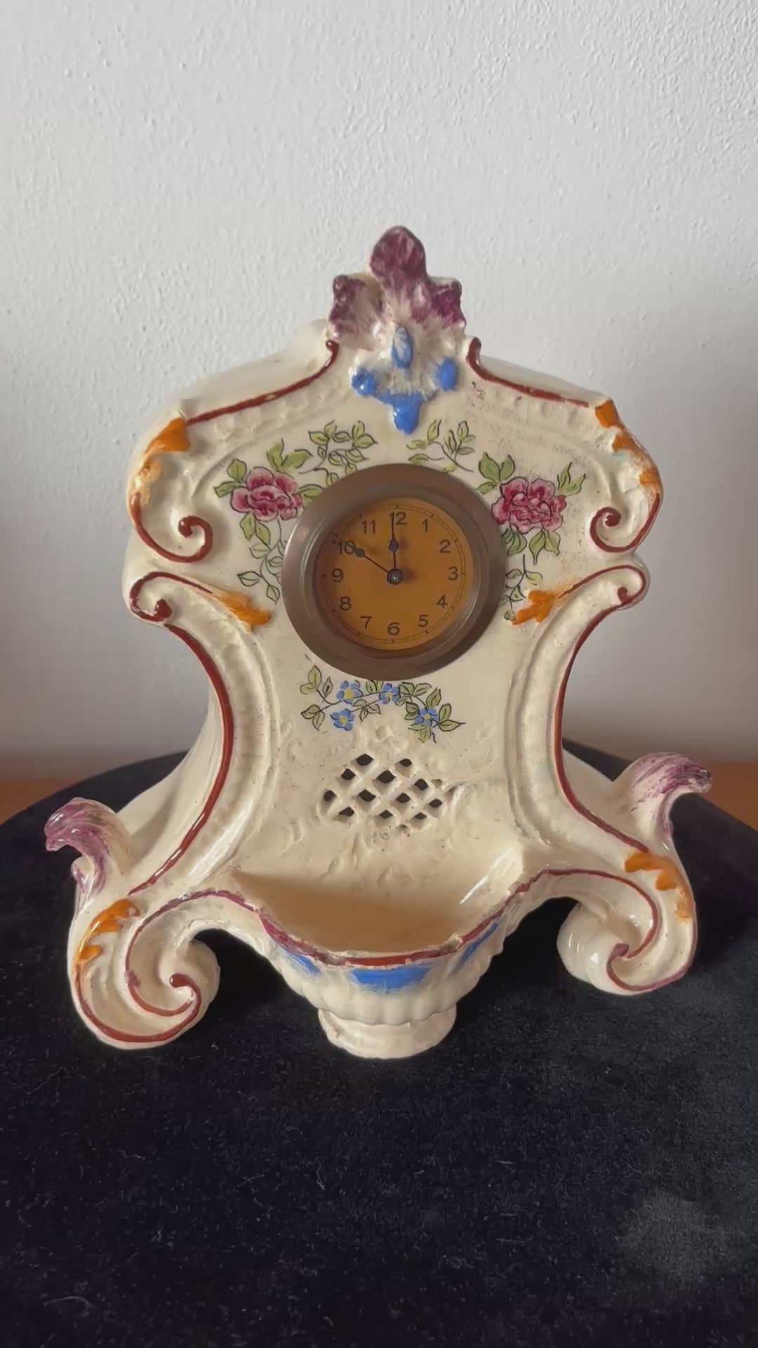 Orologio da tavolo in ceramica vintage decorata – marchiato e restaurato