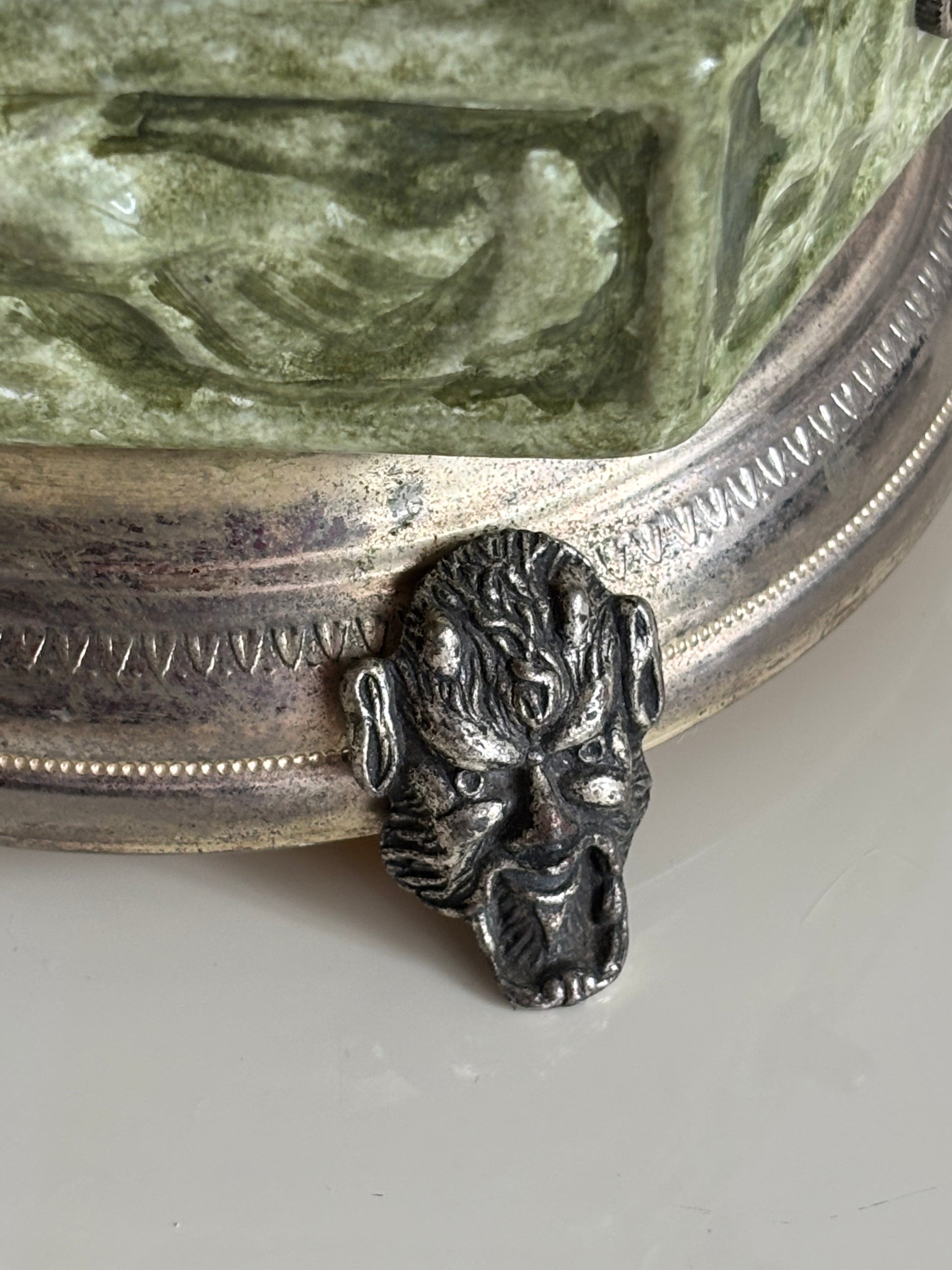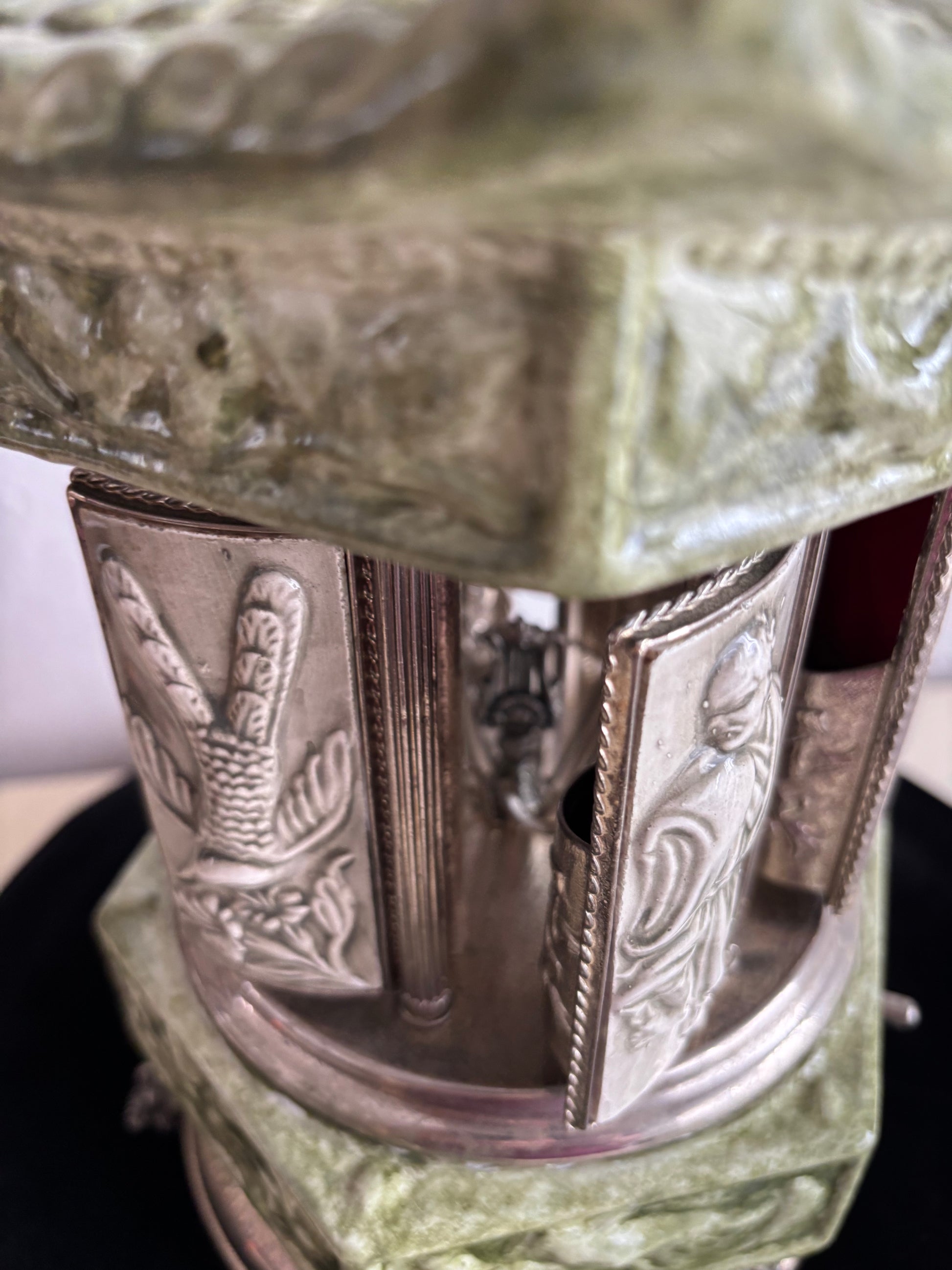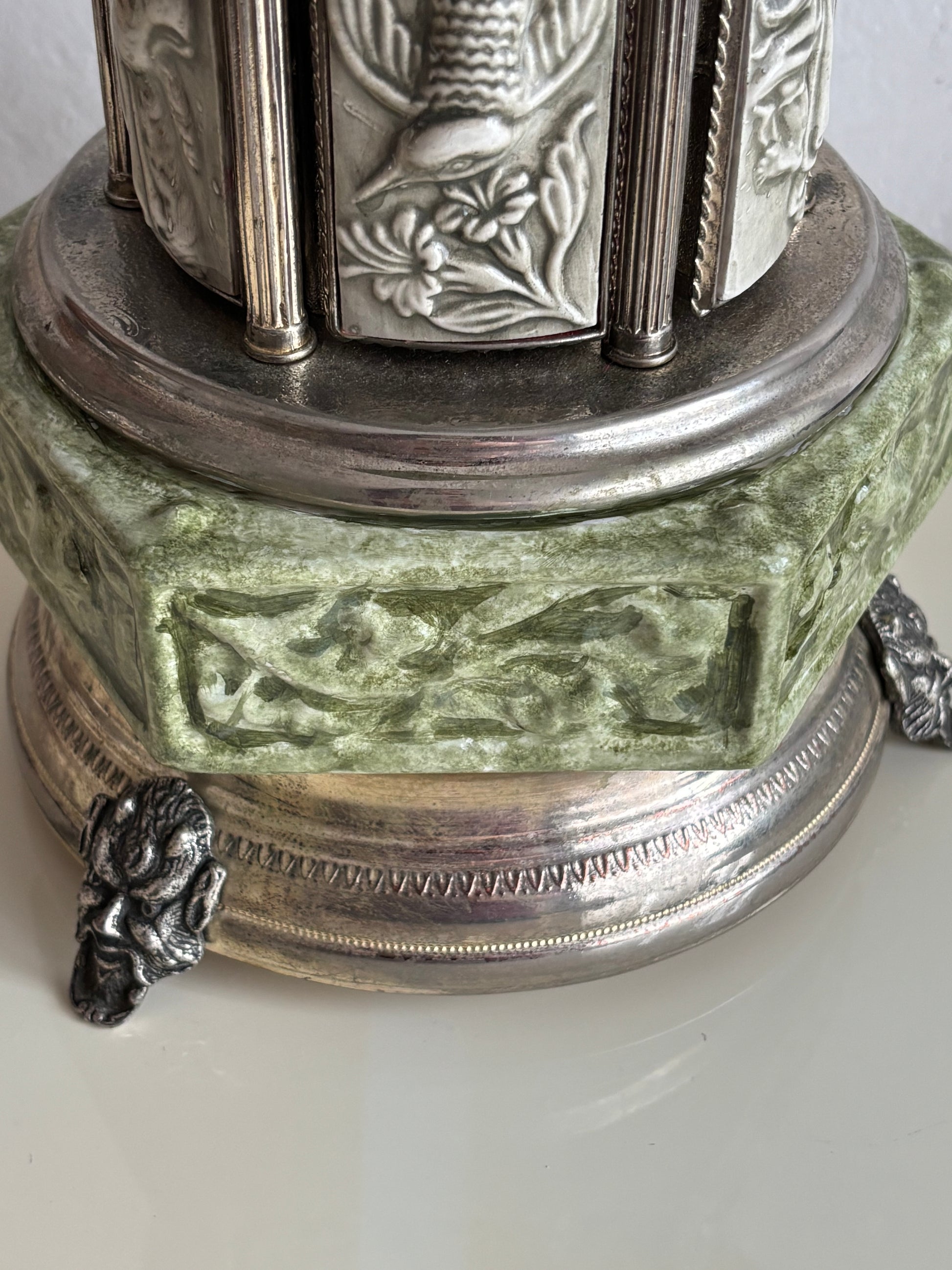 Il carillon integrato è perfettamente funzionante e aggiunge un tocco nostalgico, trasformando il portasigarette in un oggetto non solo decorativo ma anche ricco di atmosfera. La parte superiore e inferiore sono state ricostruite con attenzione, rispettando lo stile originale e garantendo un aspetto armonioso e coerente. La ceramica, solida e ben rifinita, dona presenza scenica e valorizza i dettagli in rilievo.