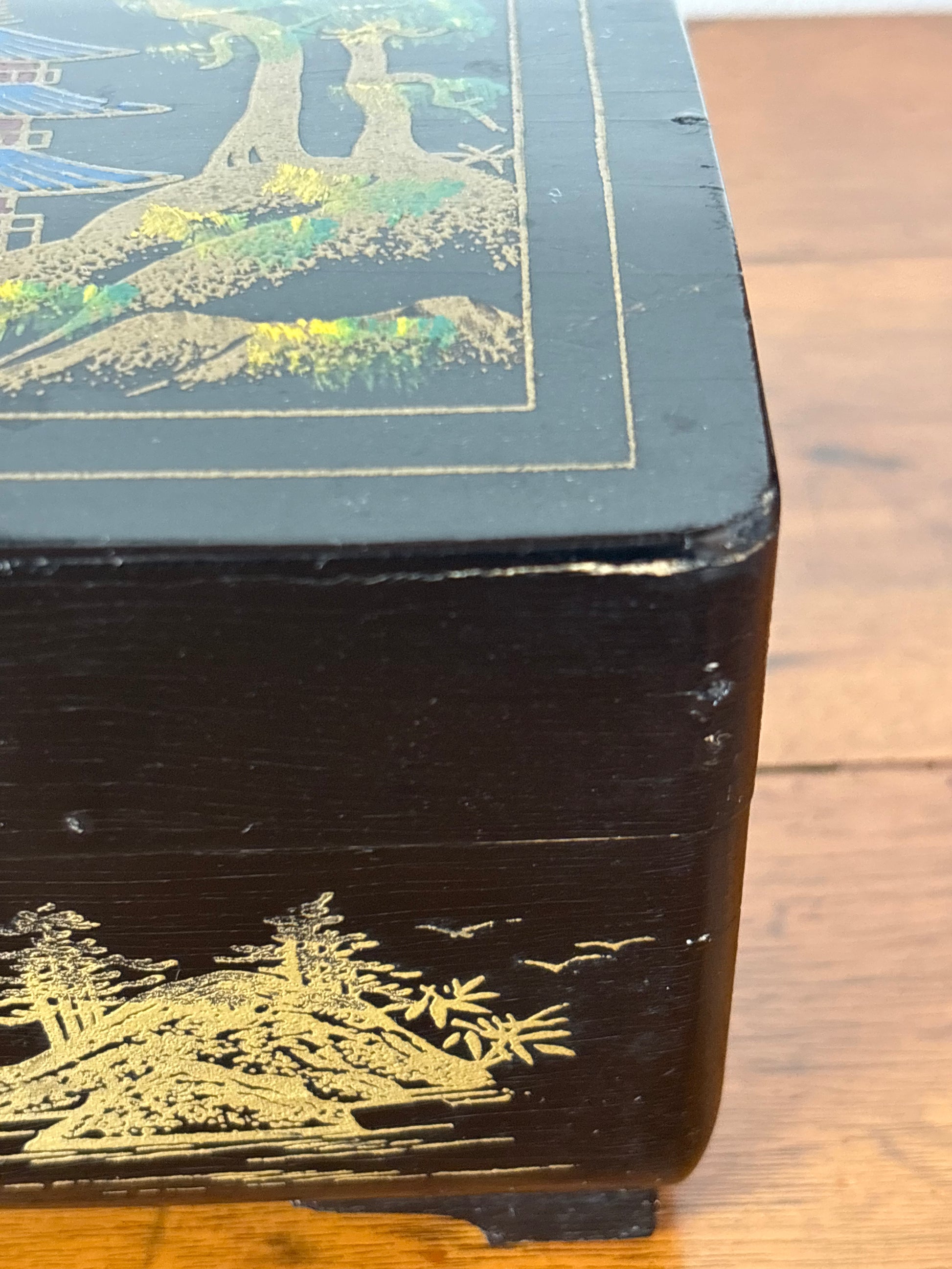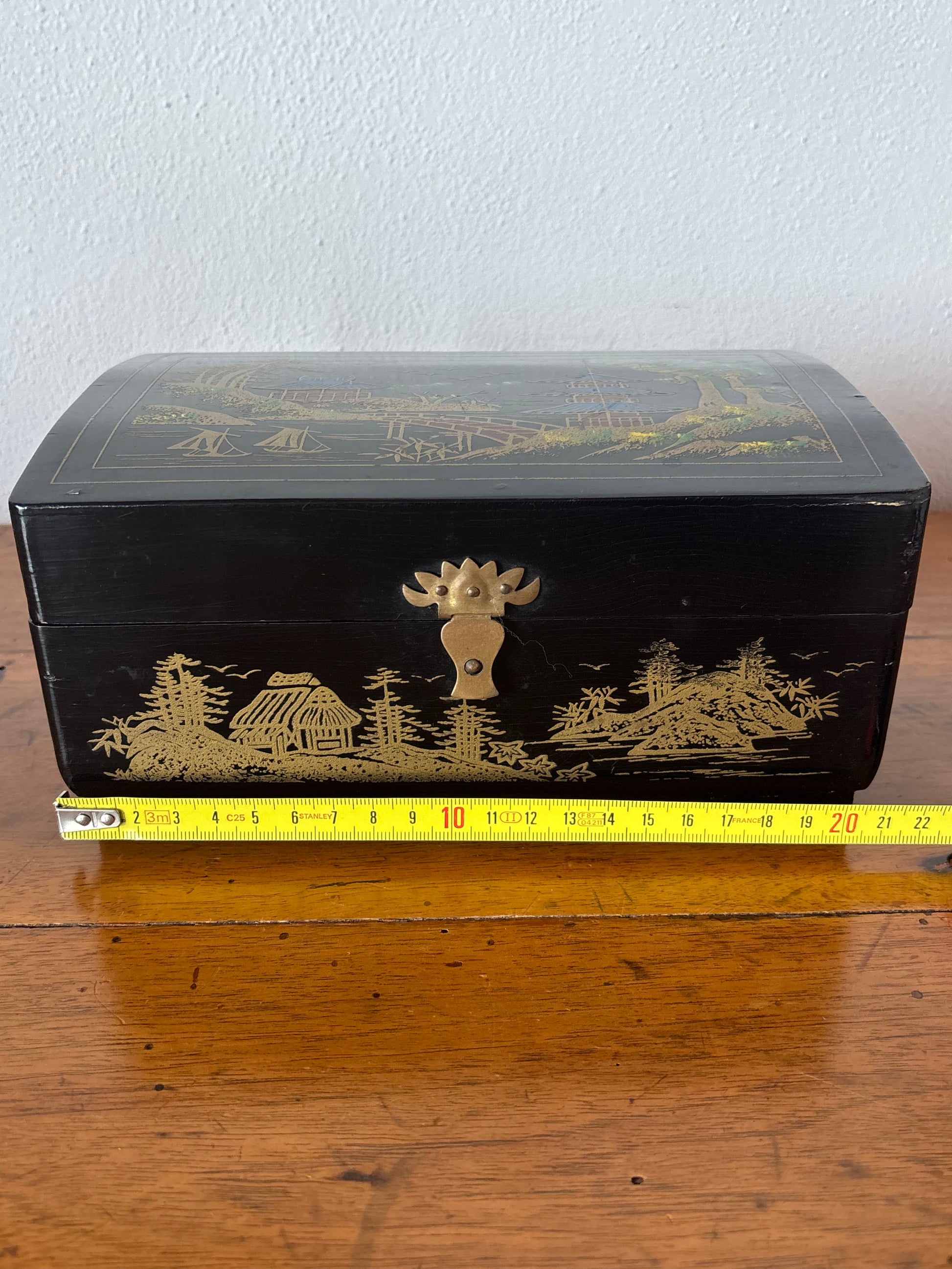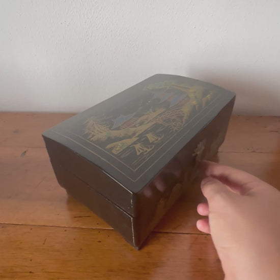 Portagioie cinese vintage con carillon funzionante – laccatura decorata, produzione Shanghai