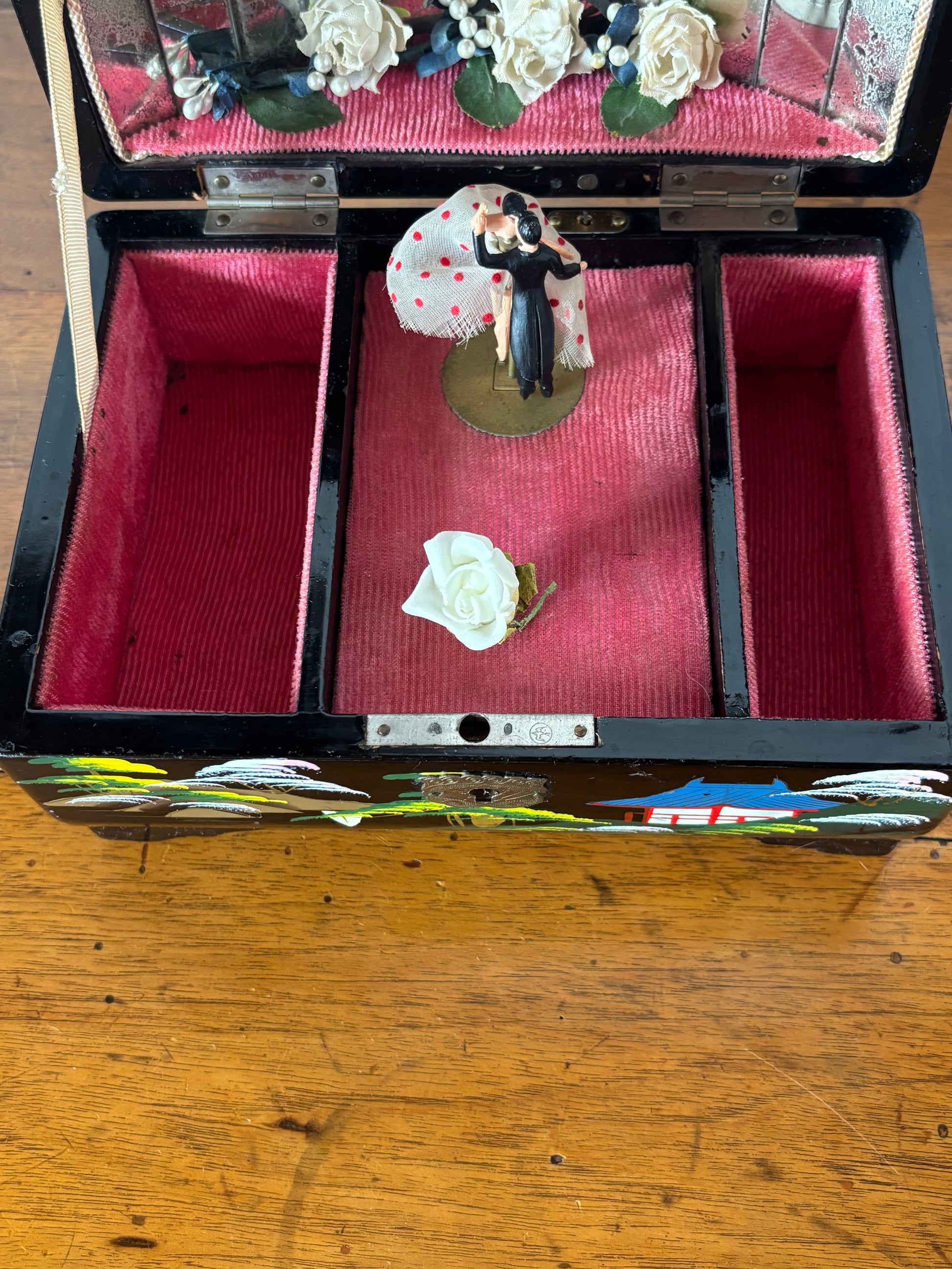 Portagioie giapponese vintage con carillon funzionante – coppia danzante e fiori