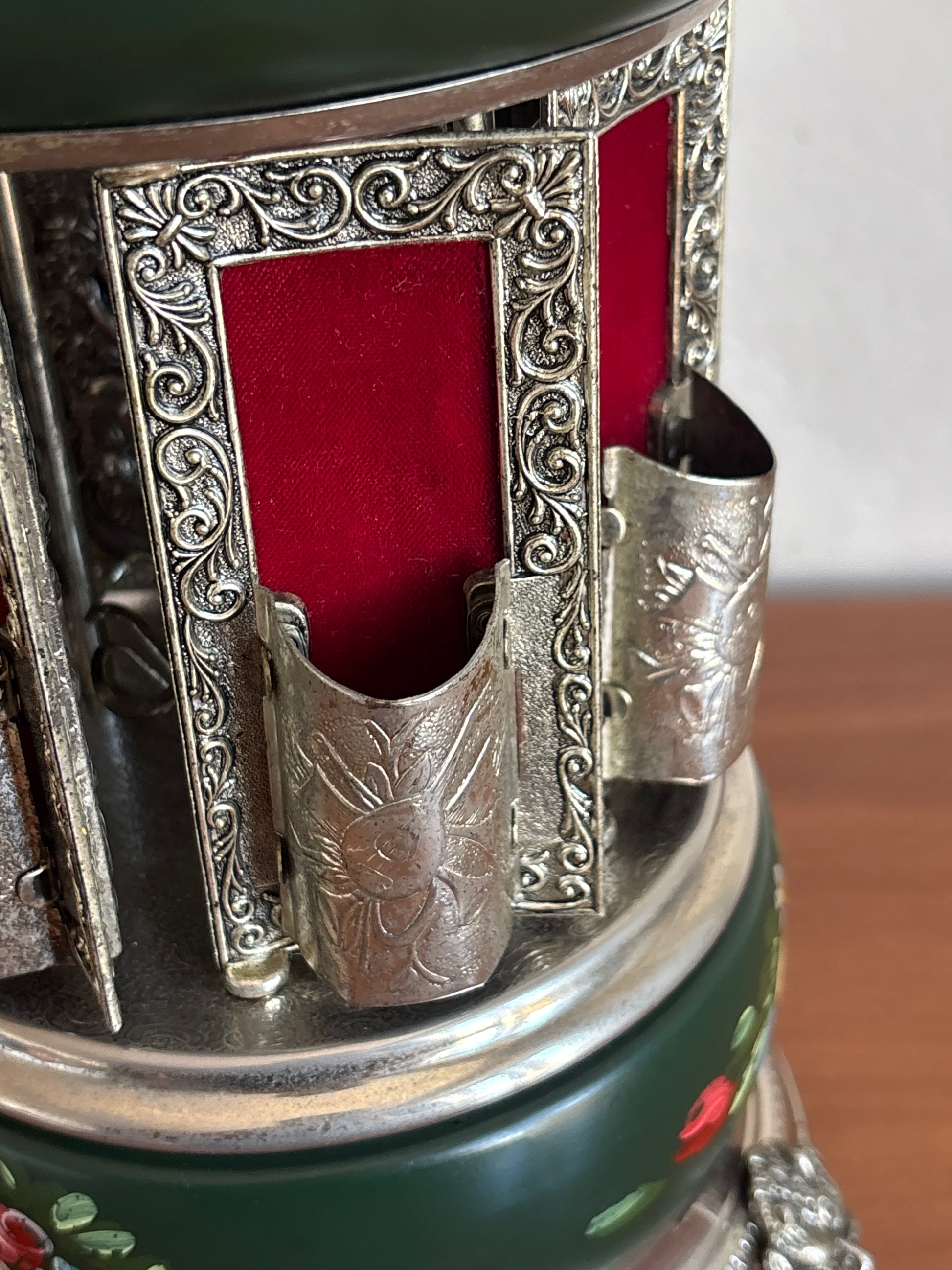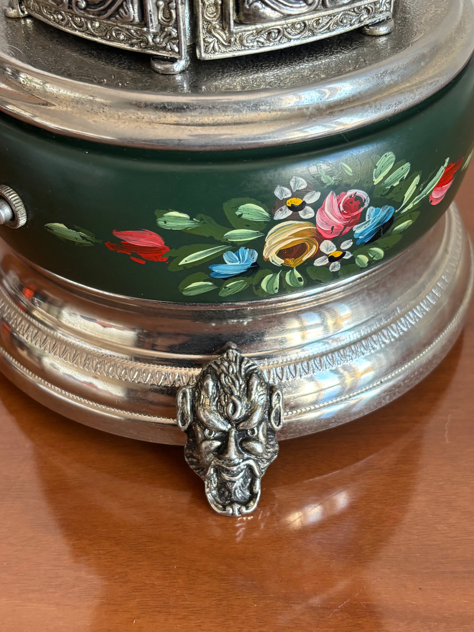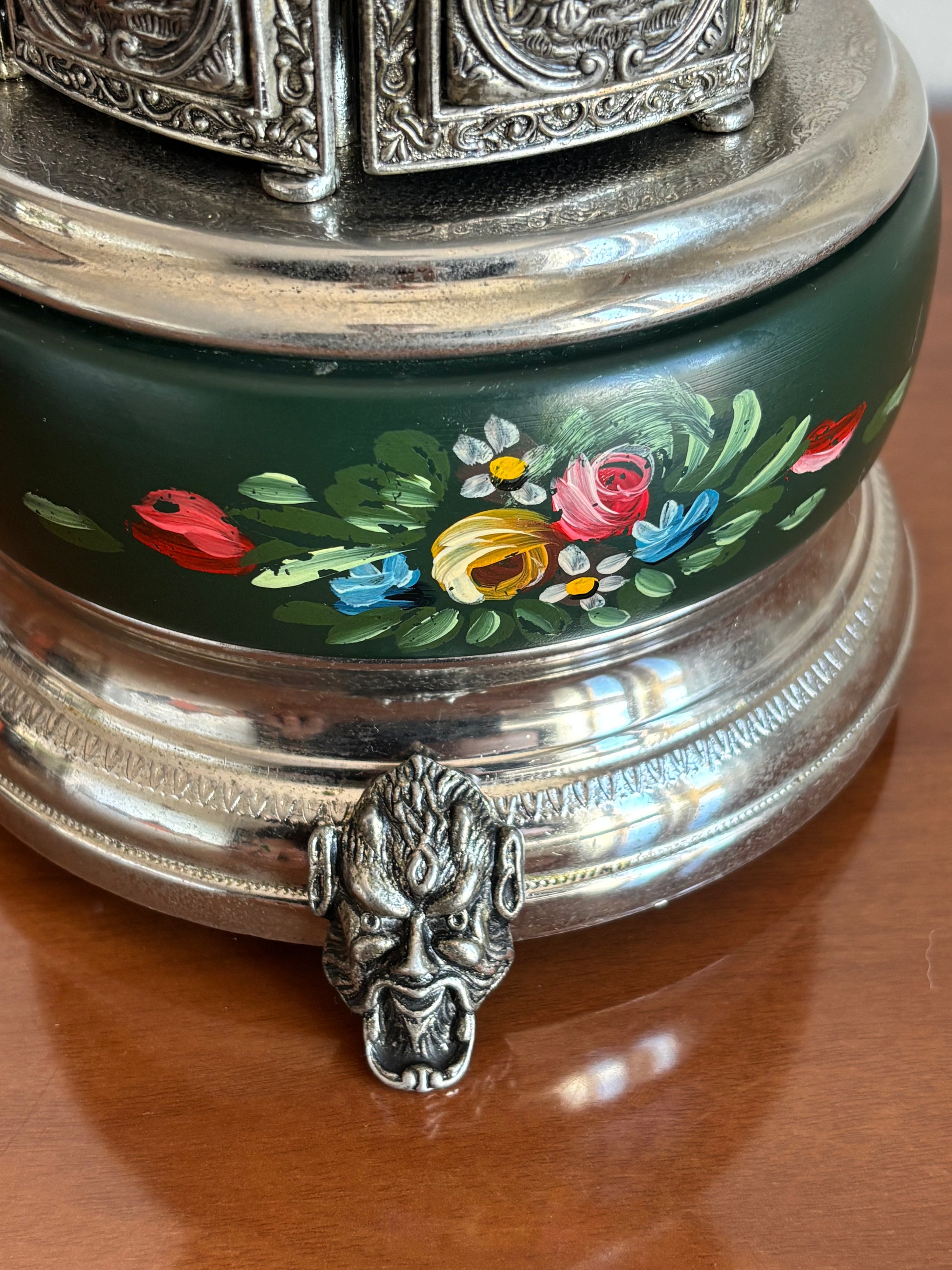 Portasigarette in metallo con carillon Reuge e decorazioni dipinte