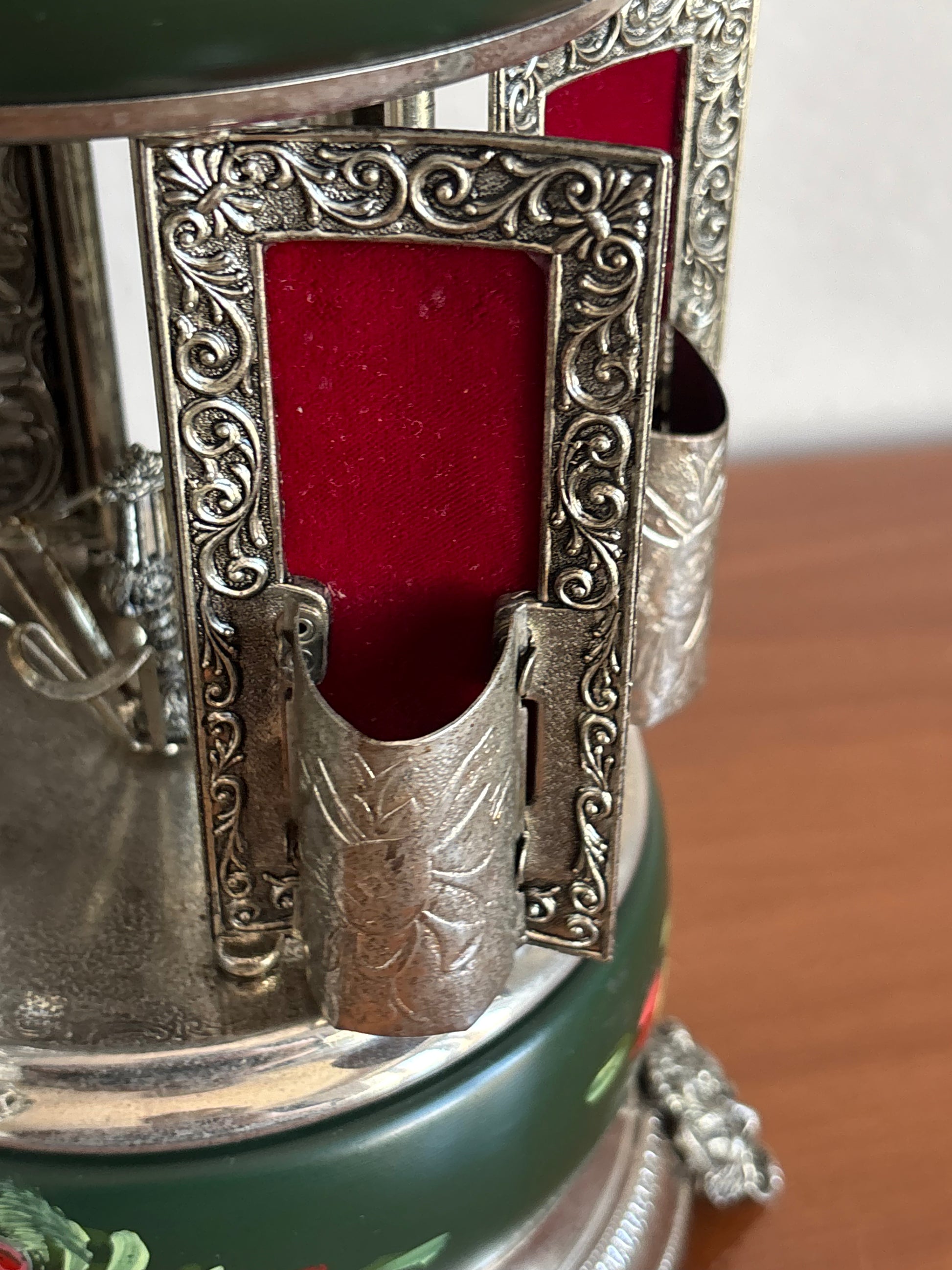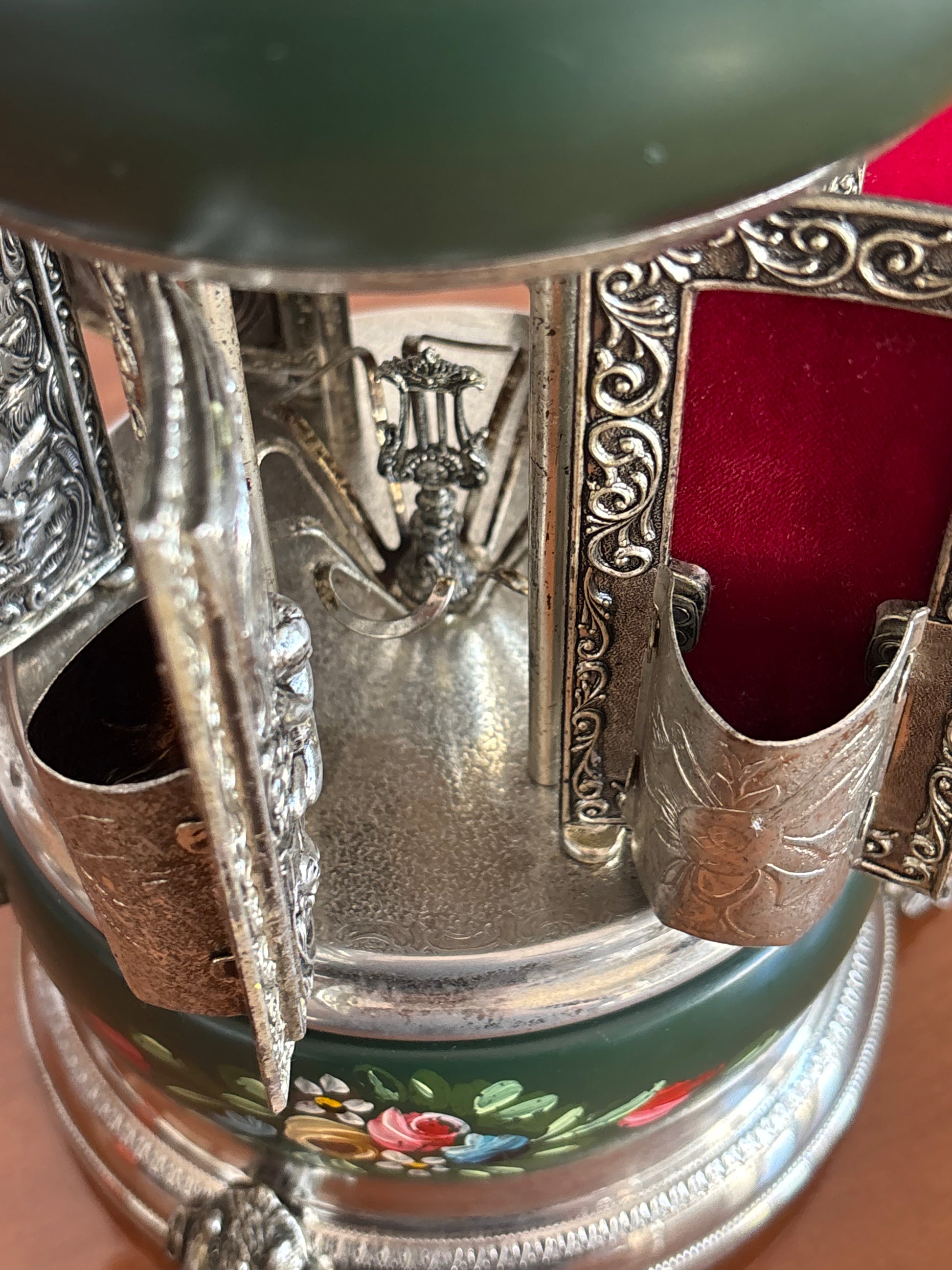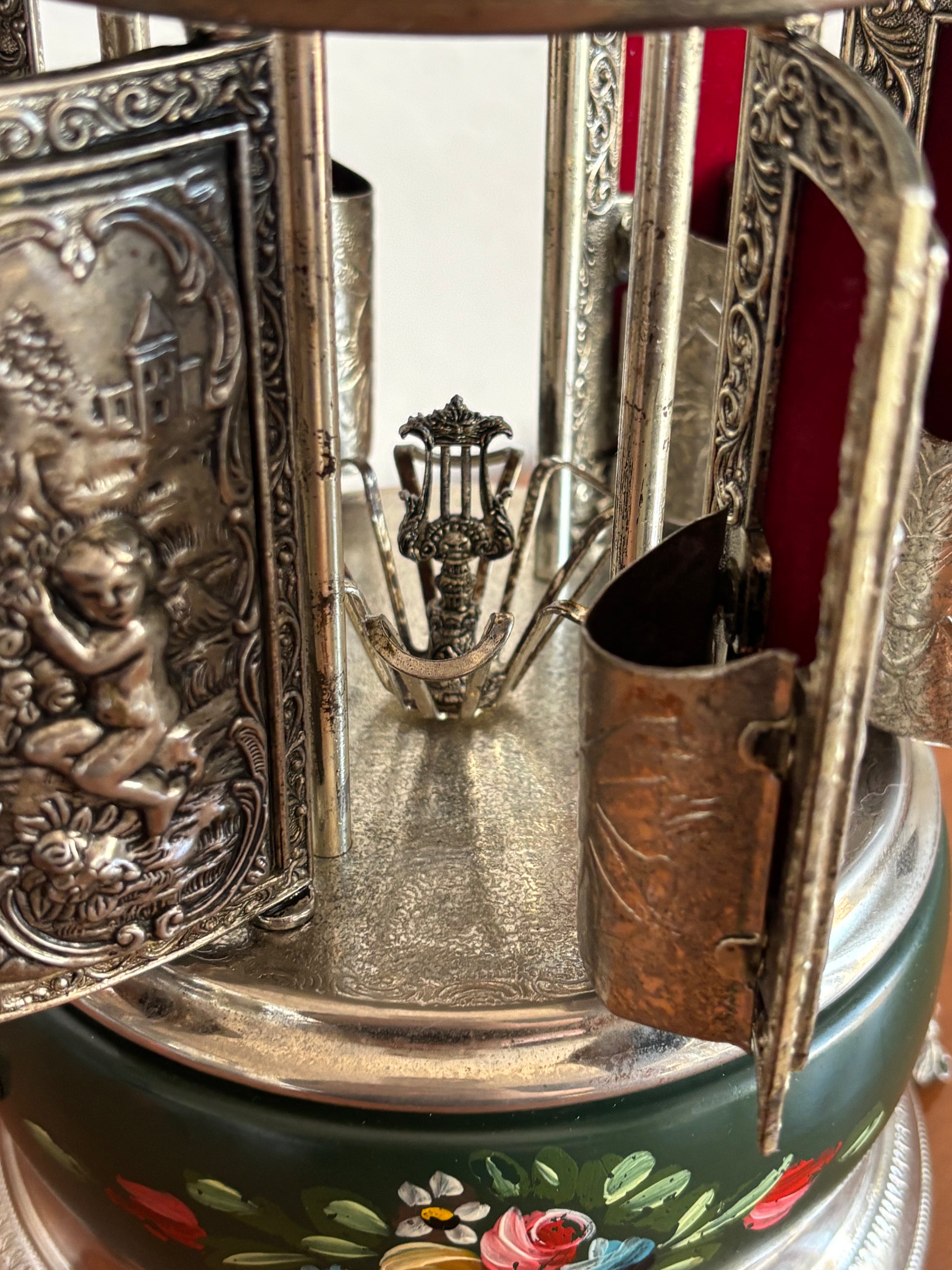 Il carillon, dotato del movimento Reuge, è funzionante e dona all’oggetto un valore aggiunto sia estetico sia collezionistico.