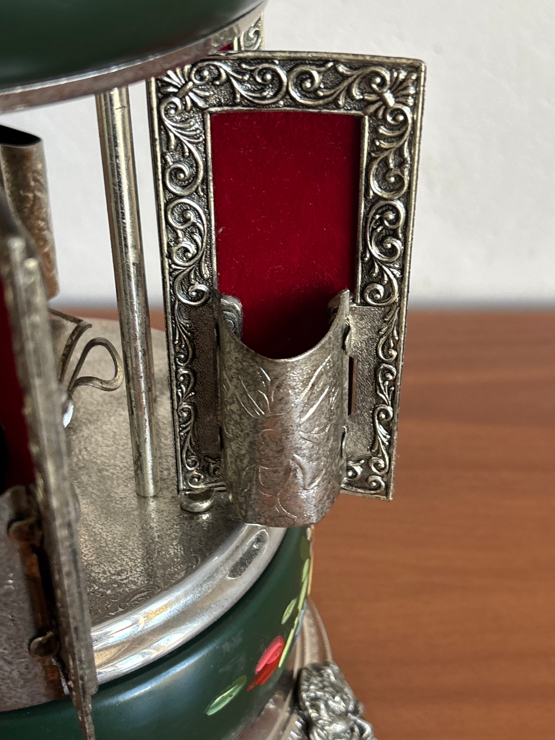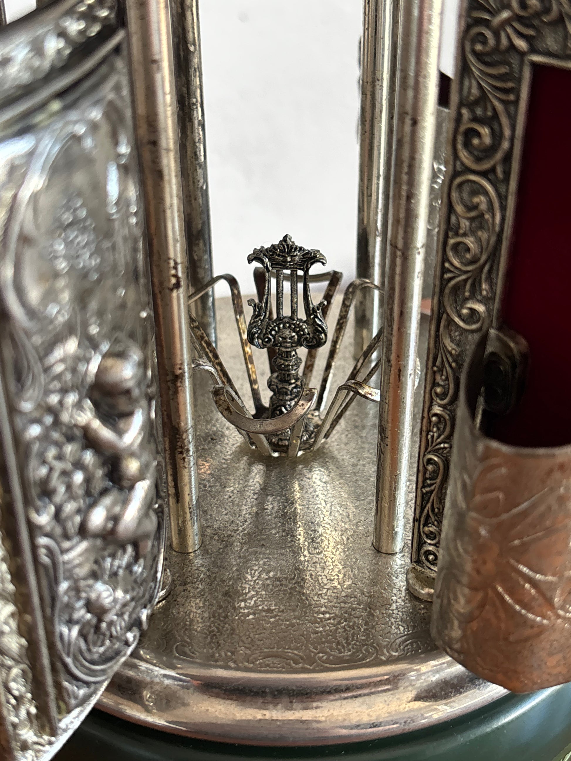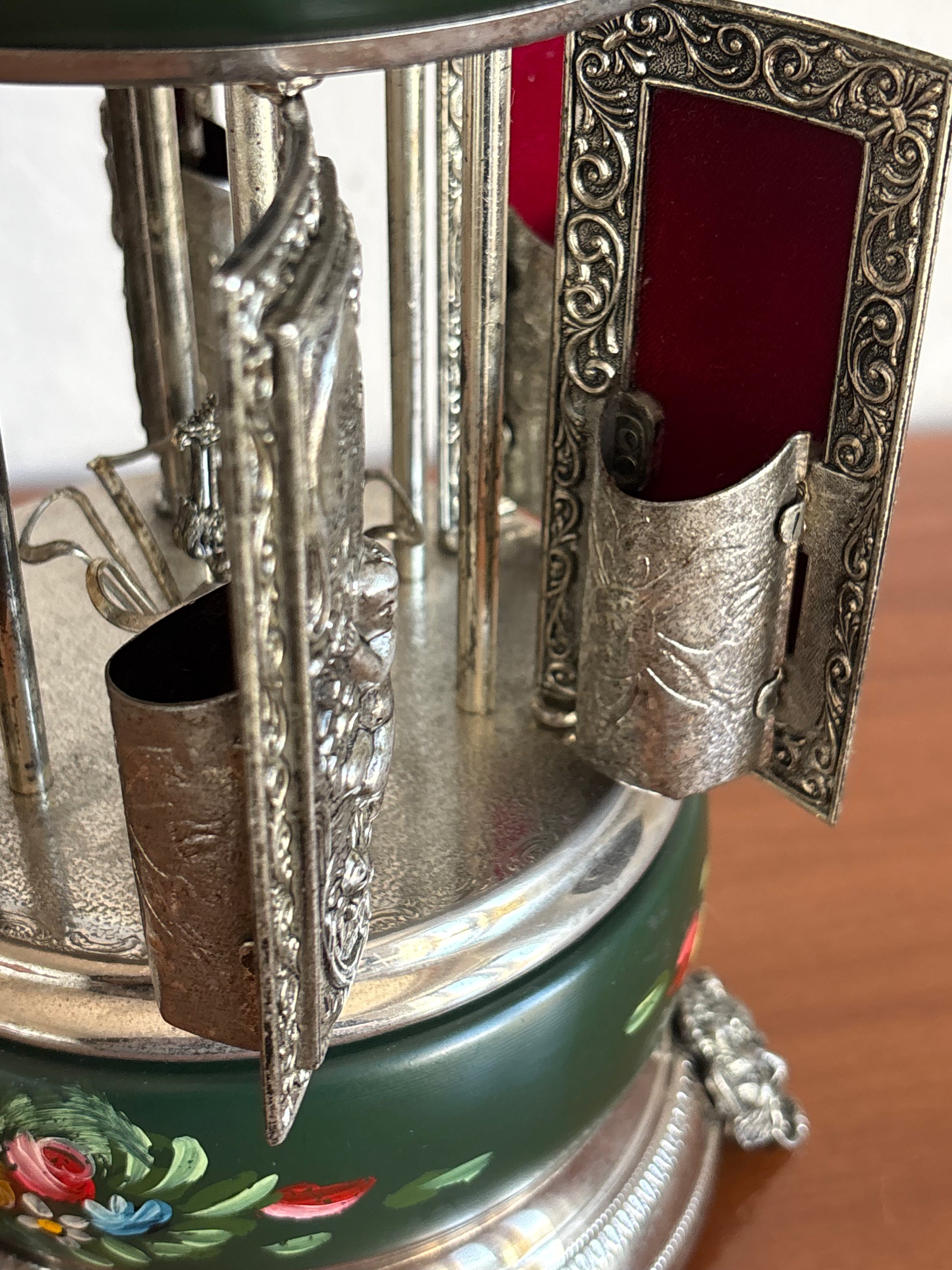 Il carillon, dotato del movimento Reuge, è funzionante e dona all’oggetto un valore aggiunto sia estetico sia collezionistico.