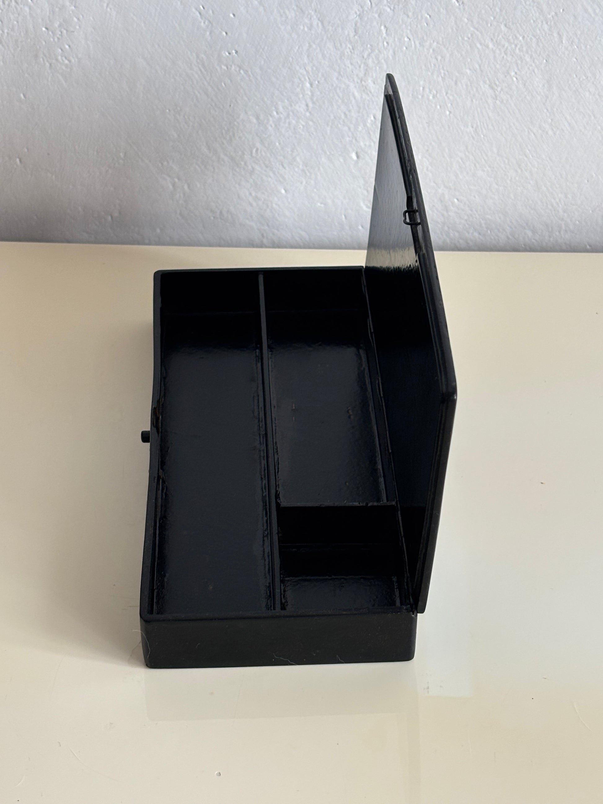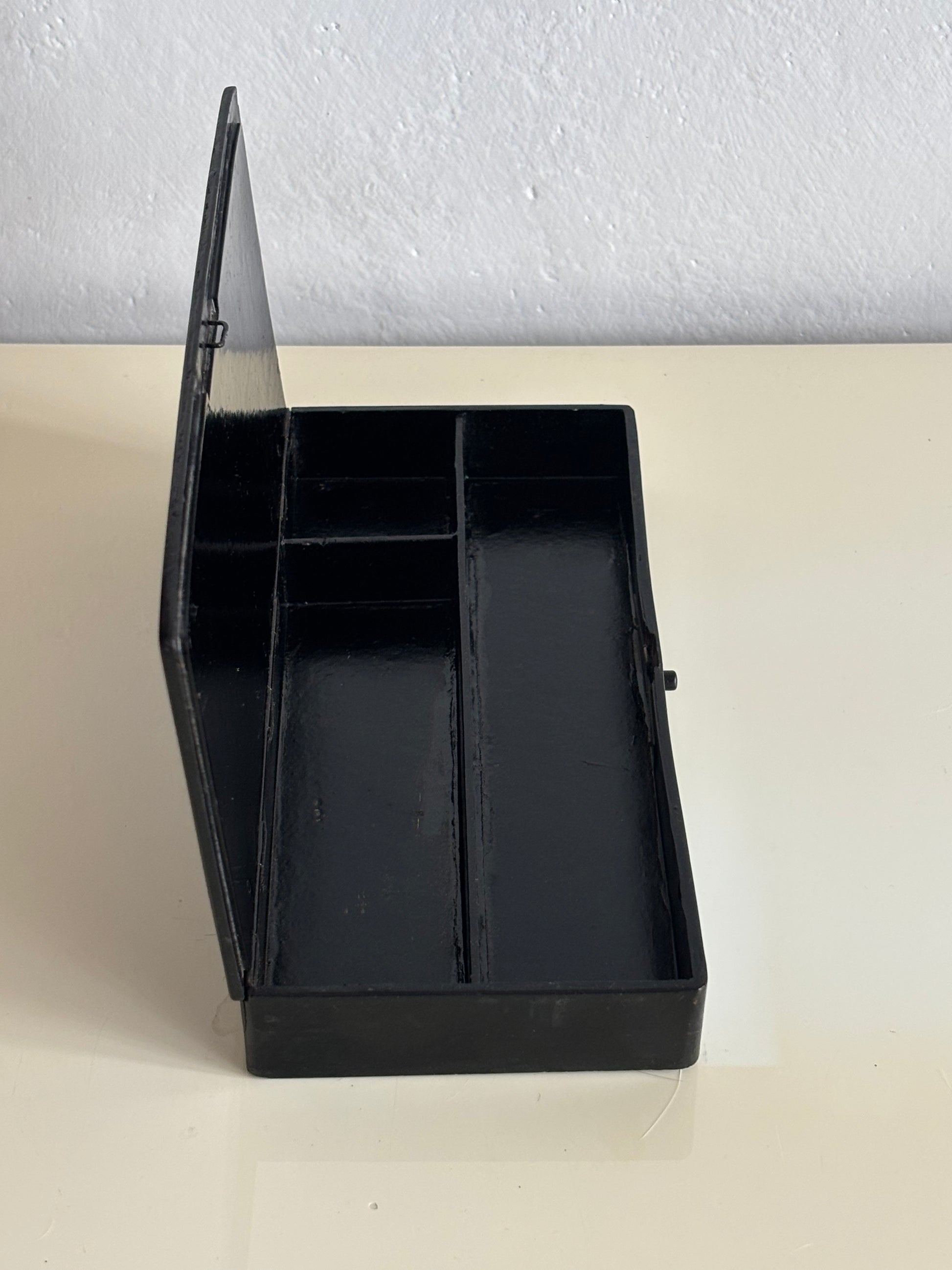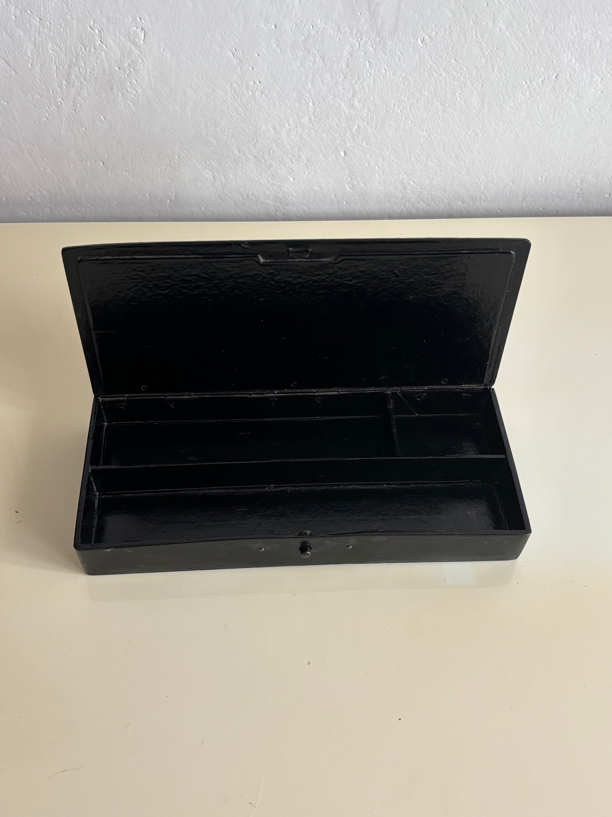 La forma allungata e le suddivisioni interne indicano l’uso come porta penne o porta strumenti da scrittura, destinato a una scrivania elegante e colta, ma lo rendono adatto anche a contenere piccoli oggetti da scrittoio o da collezione.