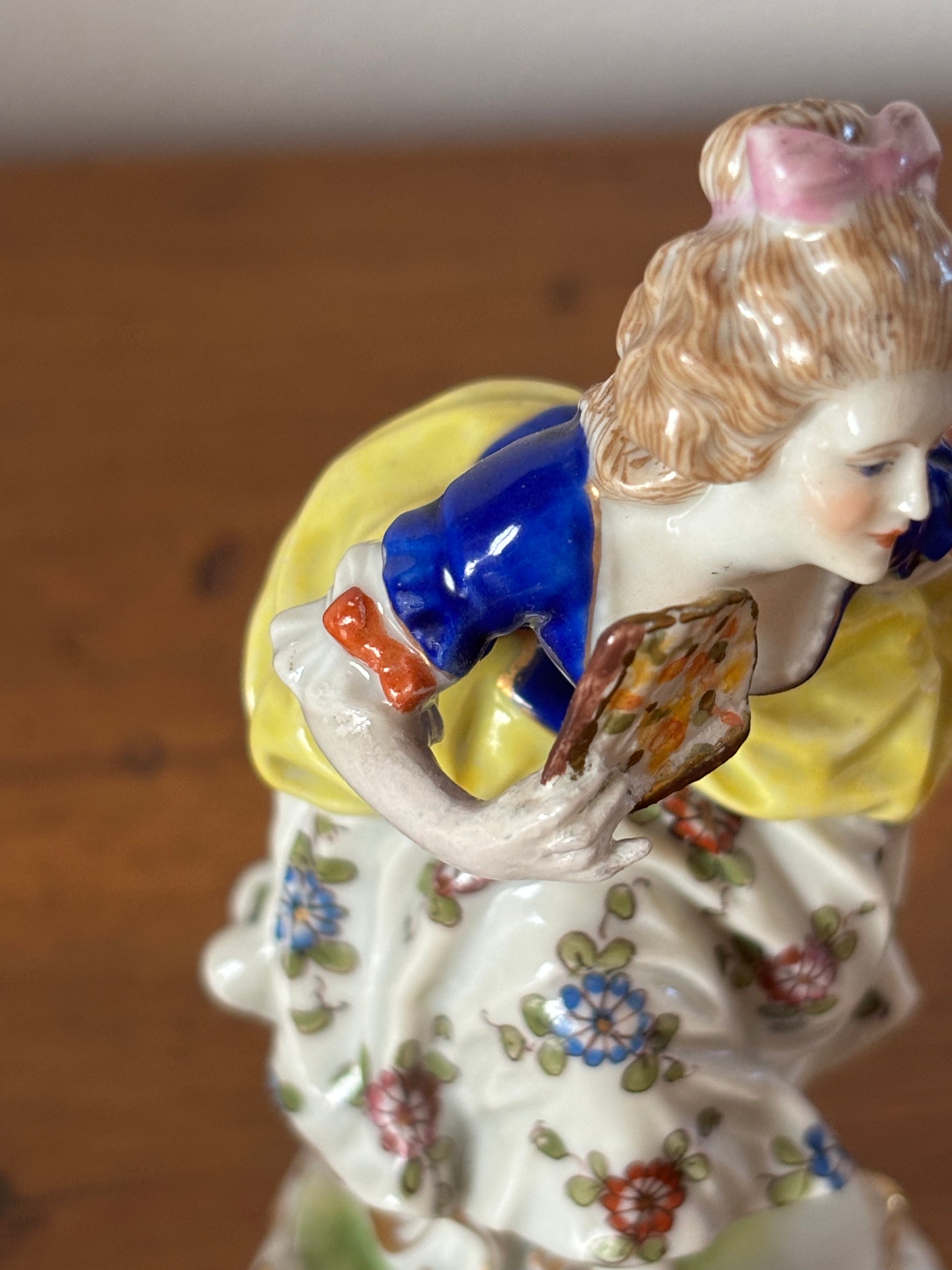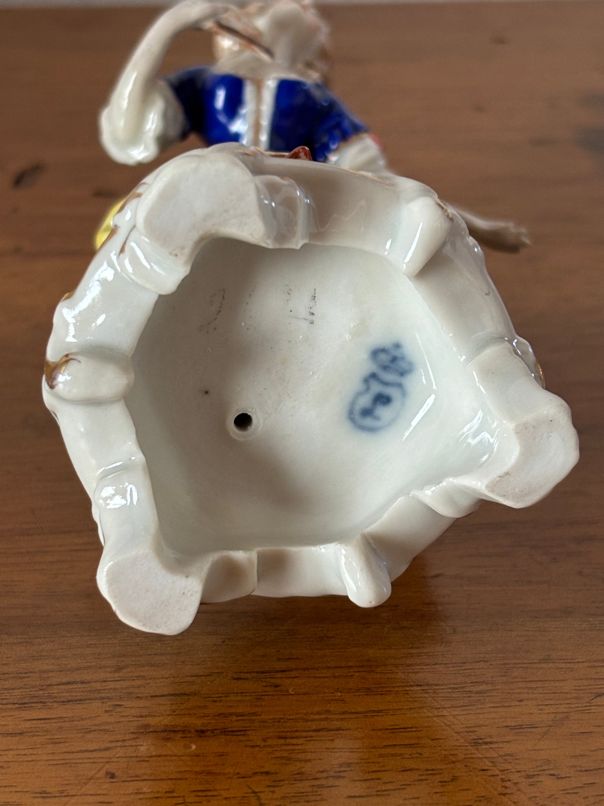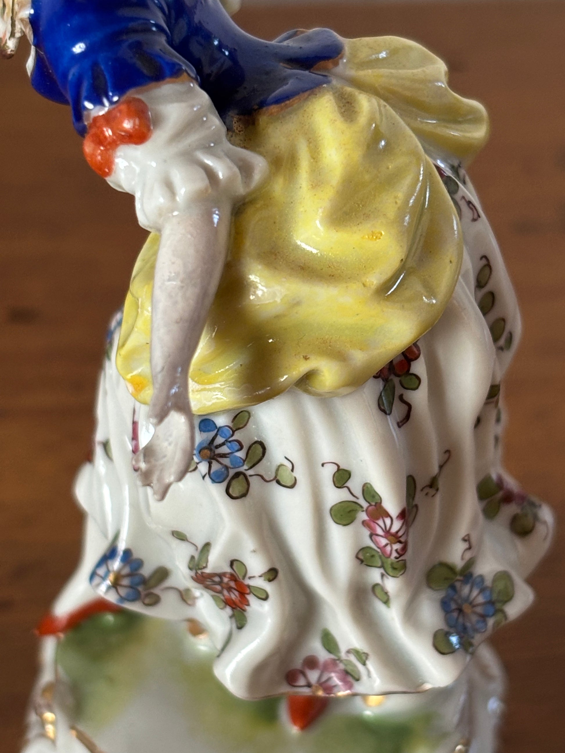 La presenza scenica, la qualità della modellazione e il prestigioso marchio di manifattura rendono questa statuetta un oggetto ideale per collezionisti di ceramiche antiche, appassionati di porcellane tedesche del XVIII secolo o per chi desidera arricchire il proprio spazio con un elemento decorativo di grande fascino.