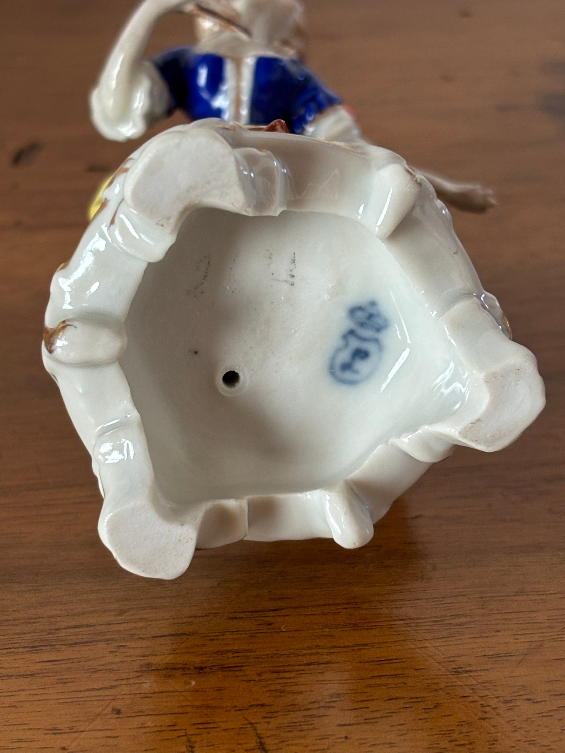 Questa statuetta in ceramica Ludwigsburg è un raffinato manufatto d’epoca, riconducibile alle prime produzioni della celebre manifattura tedesca attiva alla fine del Settecento. Il marchio sul fondo, costituito da scudo con L sormontata da corona, conferma l’attribuzione alle prime serie realizzate sotto la direzione ducale, oggi molto ricercate dai collezionisti di porcellane storiche.